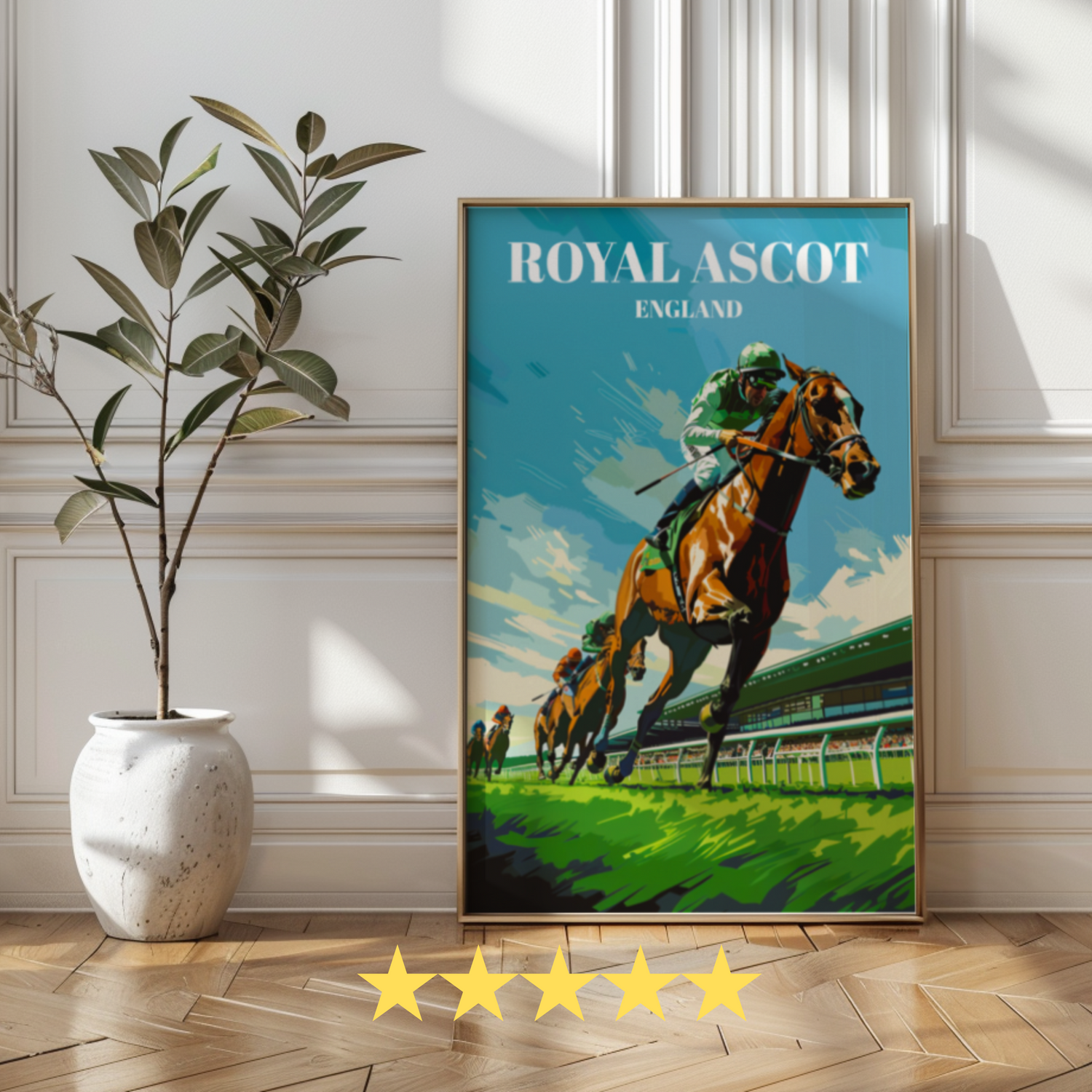 Royal Ascot Racecourse Travel Poster, Berkshire England Wall Art