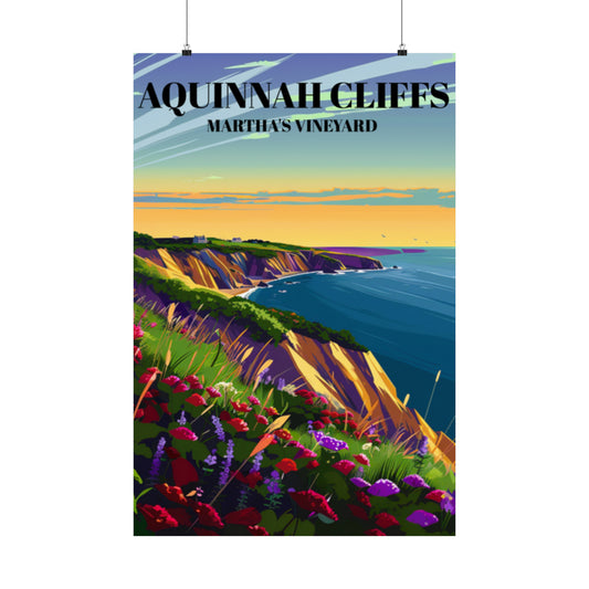 Aquinnah Cliffs Martha's Vineyard Travel Poster, Gay Head Cliffs Sunset Art