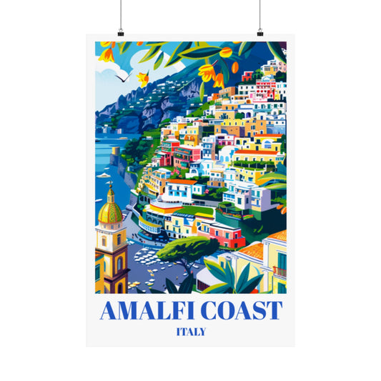 Amalfi Coast Italy Travel Poster, Coastal Landscape Wall Art