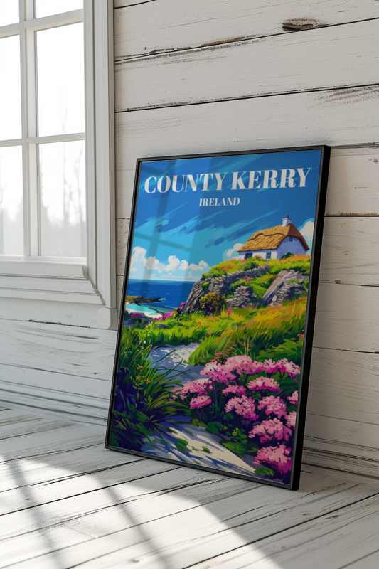 County Kerry, Ireland Travel Poster, Charming Irish Cottage in the Ring of Kerry