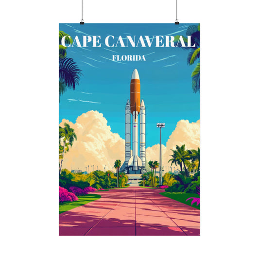 Cape Canaveral Florida Travel Poster, Space Coast Vintage Art Print,