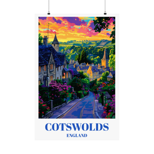 Charming Cotswolds Village Scene Travel Poster, England Countryside Decor