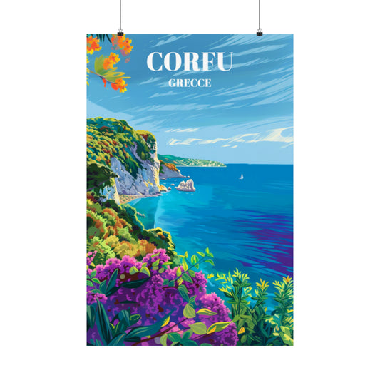 Corfu Greece Beach Travel Poster, Stunning Ionian Sea Coastal Landscape Art