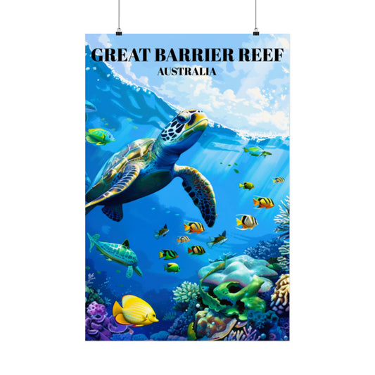 Colorful Great Barrier Reef Australia Travel Poster - Tropical Coral Reef Seascape