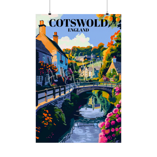 Quaint Cotswolds Village Travel Poster: English Countryside Wall Art