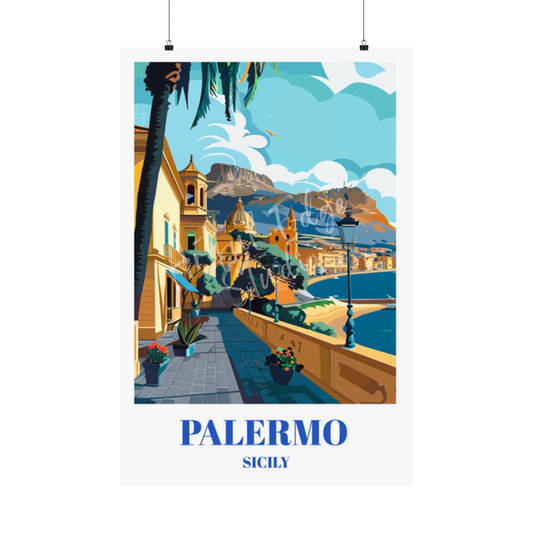 Palermo Sicily Travel Poster, Mediterranean Coastal Cityscape Wall Decor