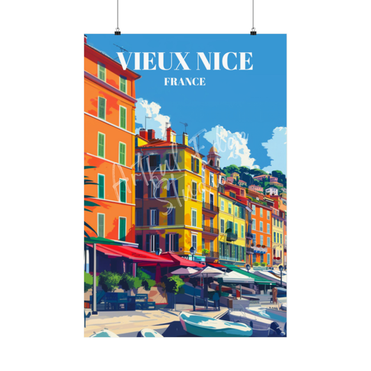 Old Town Vieux Nice France Travel Poster, Vintage Mediterranean Cityscape