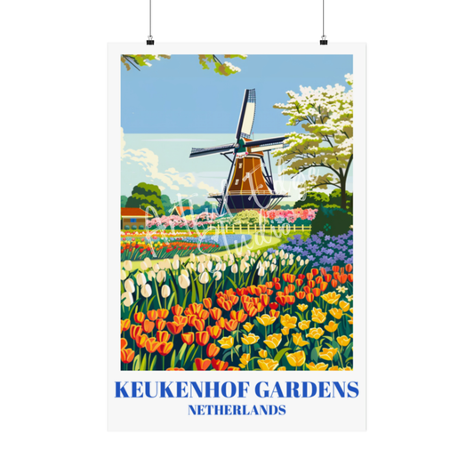 Keukenhof Gardens Netherlands Travel Poster, Dutch Tulip Fields