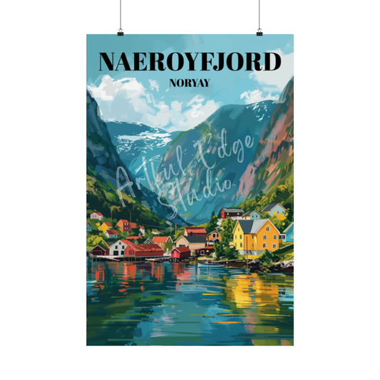 Nærøyfjord Norway Travel Poster, UNESCO World Heritage Site Wall Art , Scandinavian Landscape Print, Nordic Home Decor,