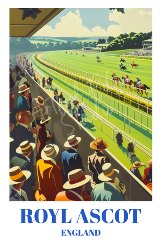 Royal Ascot Racecourse Travel Poster, Berkshire England Wall Art