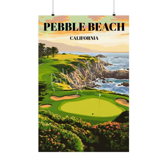 Pebble Beach Golf Course Monterey CA Travel Poster, Coastal Golf Artwork