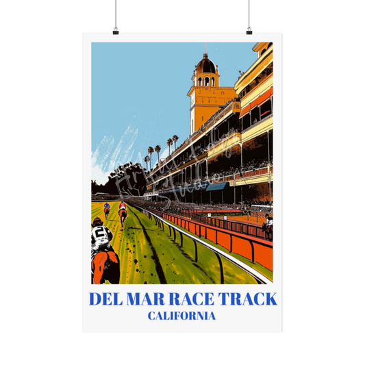 Vintage Del Mar Horse Racetrack Travel Poster, California Equestrian Print