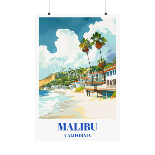 Malibu California Travel Poster, Coastal Living and Sunset Beach Houses