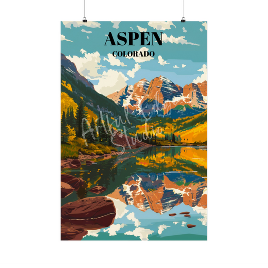 Maroon Bells Aspen Colorado Travel Poster, Scenic Mountain Landscape