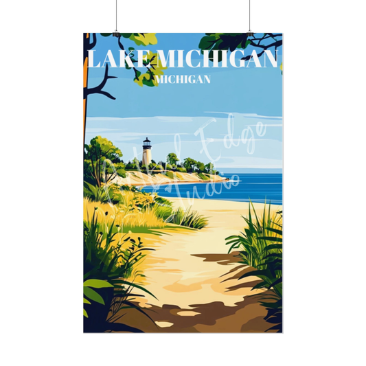 Lake Michigan Travel Poster, Great Lakes Wall Art Print, Coastal Home Decor,
