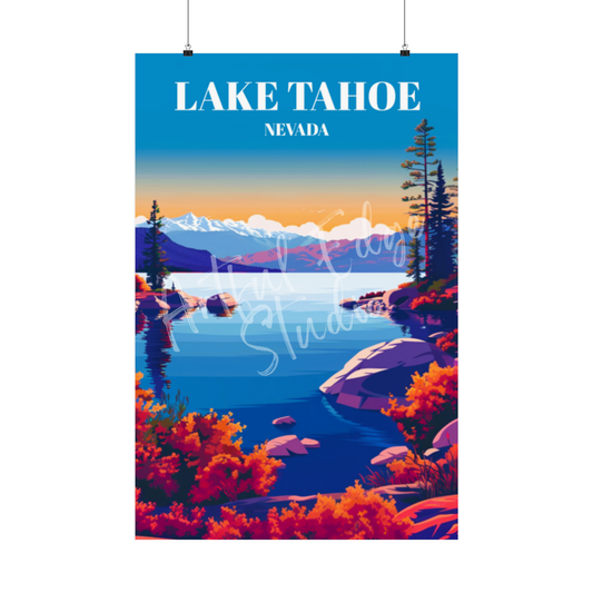 Lake Tahoe Travel Poster, Stunning Mountain Landscape Travel Print