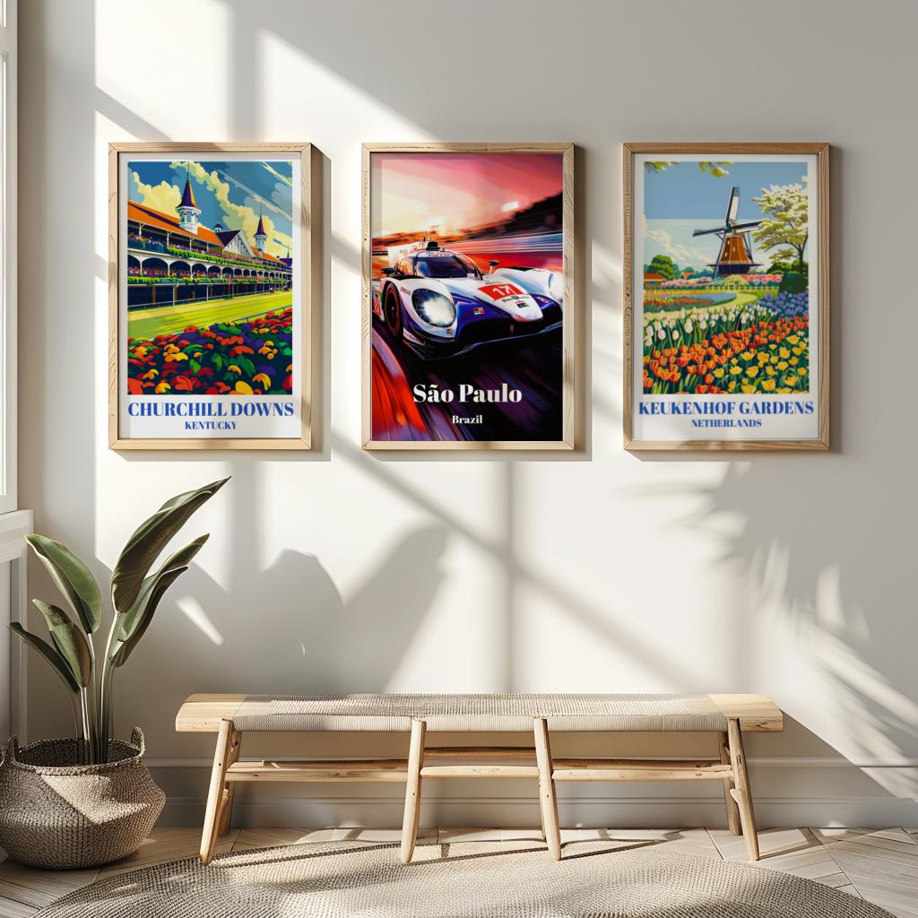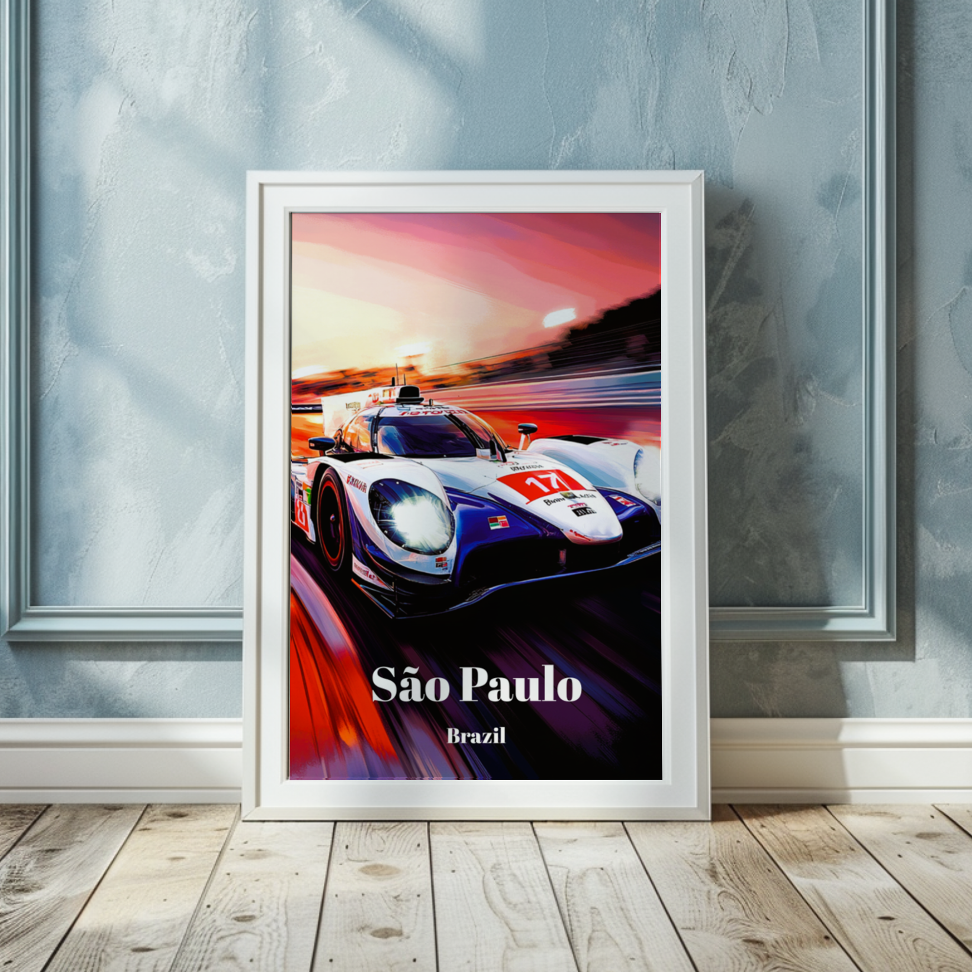 Capture the excitement of the 6 Hours of São Paulo with this stunning travel poster featuring the legendary Interlagos Circuit in Brazil. Perfect for motorsport enthusiasts, this high-quality print highlights the vibrant energy of endurance racing and Brazil's iconic racing heritage. Ideal for home, office, or garage decor, it’s a must-have for fans of international motorsport events. With its vintage-inspired design and bold colors, this artwork makes a unique gift for race lovers and collectors who admire the thrill of Interlagos and São Paulo's dynamic racing culture.