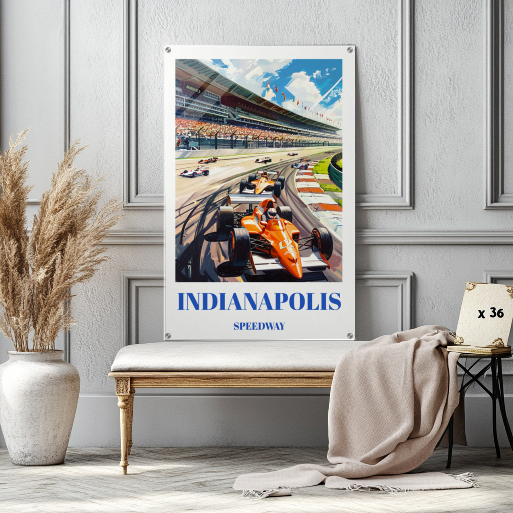Acrylic Print of Indianapolis Racetrack Travel Poster. Indy 500 Wall Art