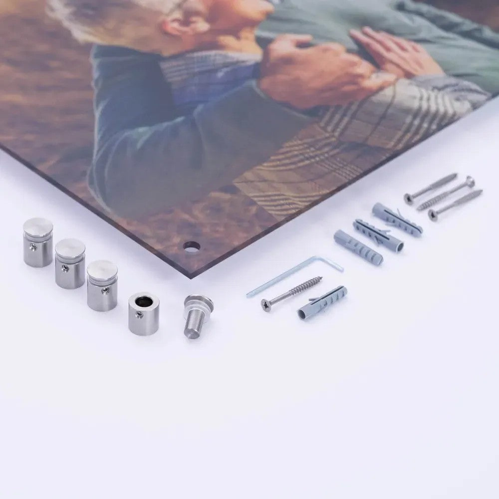 Acrylic prints offer vibrant, high-resolution images with a glossy, glass-like finish and stunning depth. Durable and scratch-resistant, they’re ideal for luxury home decor, corporate offices, galleries, and modern art displays: Material: 4mm (0.15") acrylic for a sleek, vibrant, and durable finish. Design: Straight-cut corners for a modern look. Transparent backgrounds default to white for optimal presentation. Hanging Kit: Includes hardware, screws, and screw holes at each corner (14mm (0.55") from the edge, with an 8mm (0.31") diameter hole and 15mm (0.6") screw head). Sizes: 18 sizes in inches (US&CA) and cms (rest of the world).
