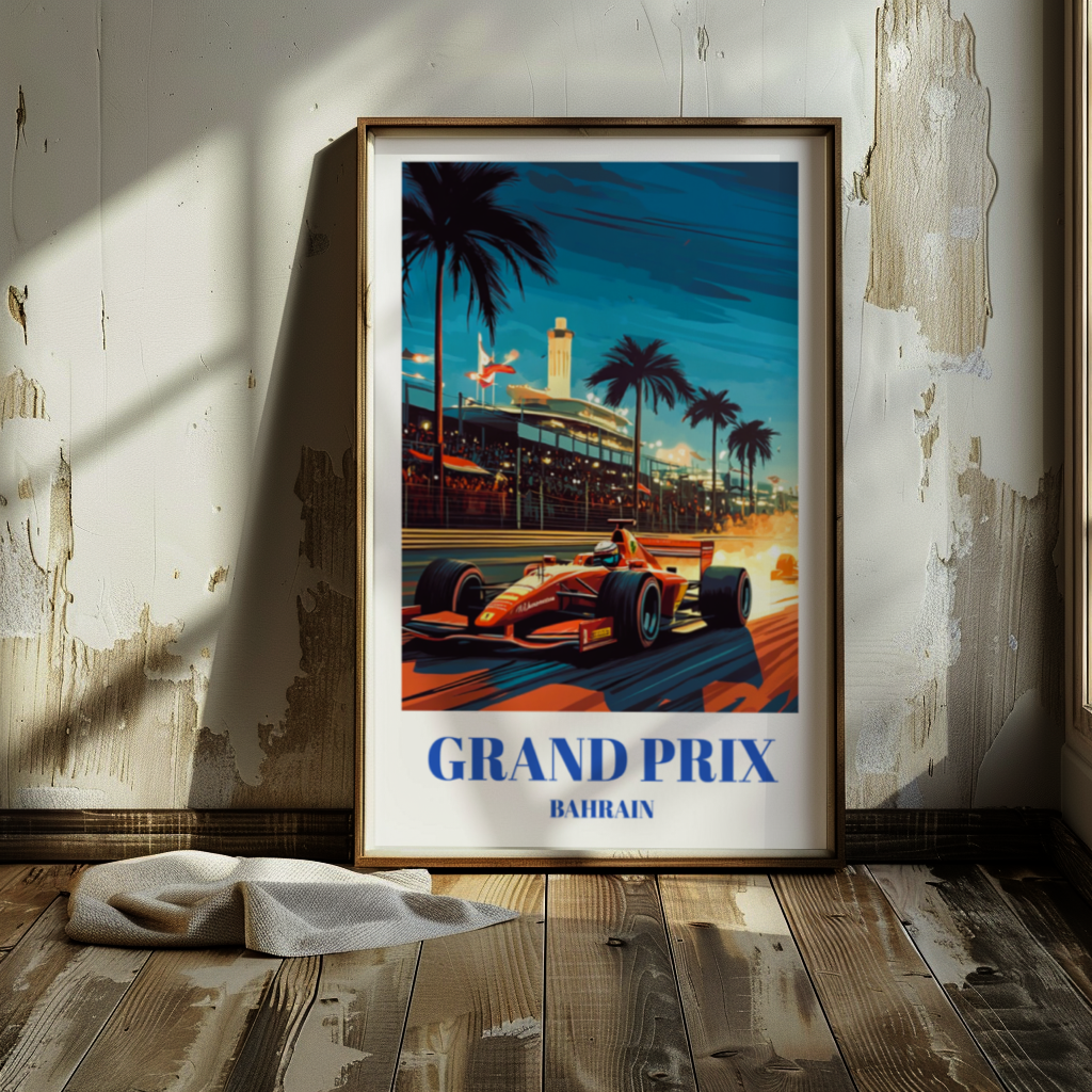 Bahrain Grand Prix Travel Poster, Sakhir Circuit Formula 1 Art Print