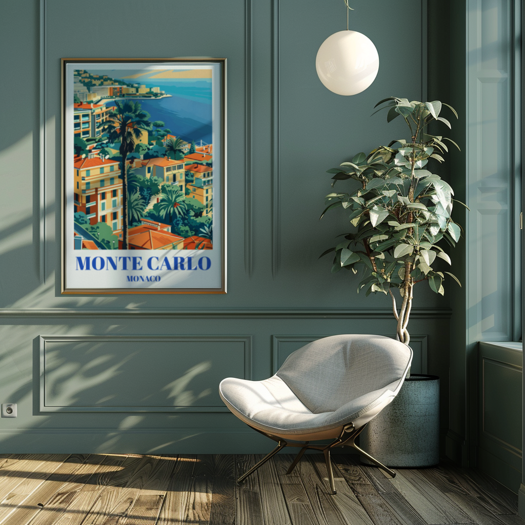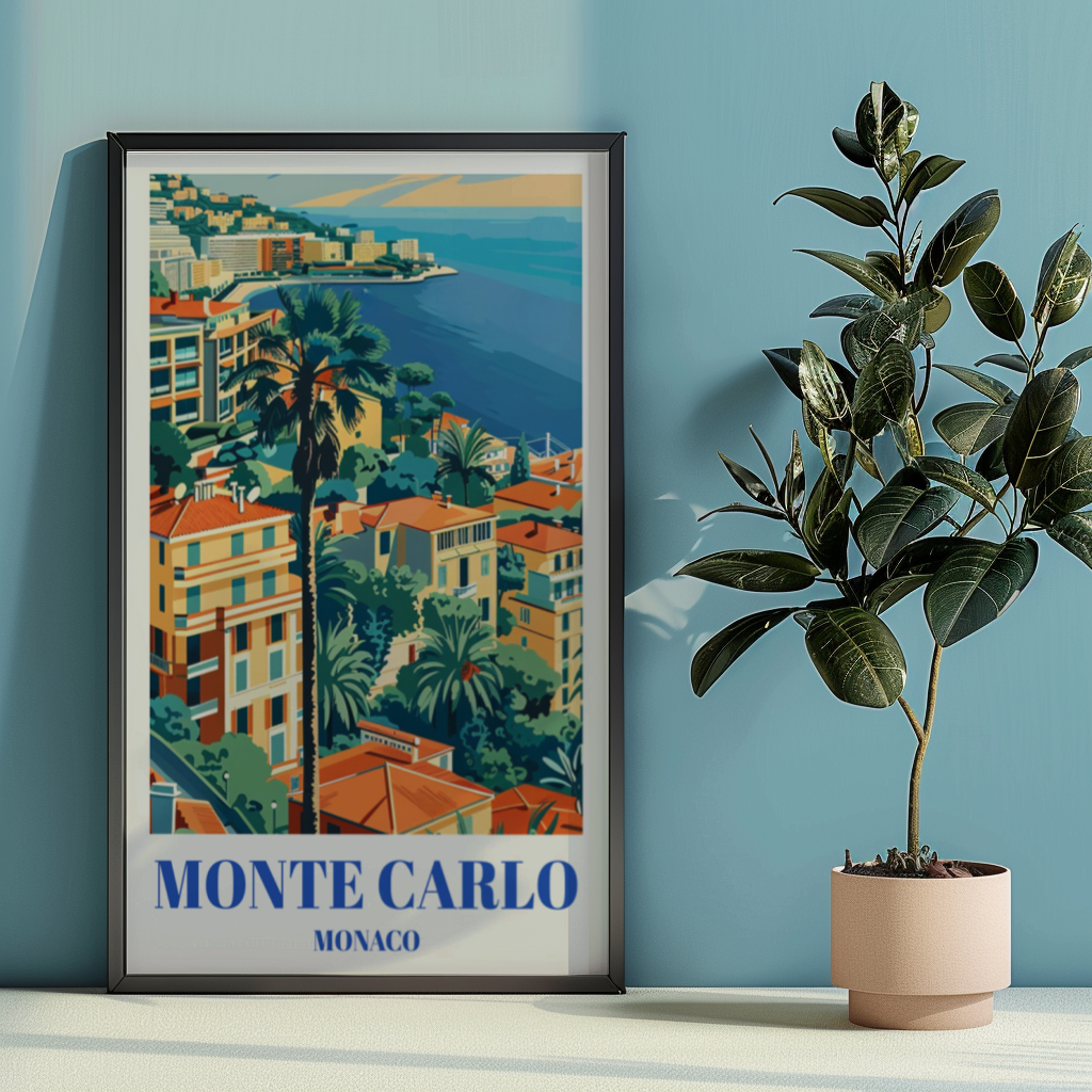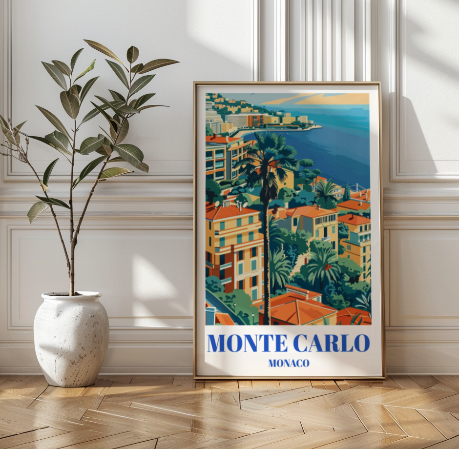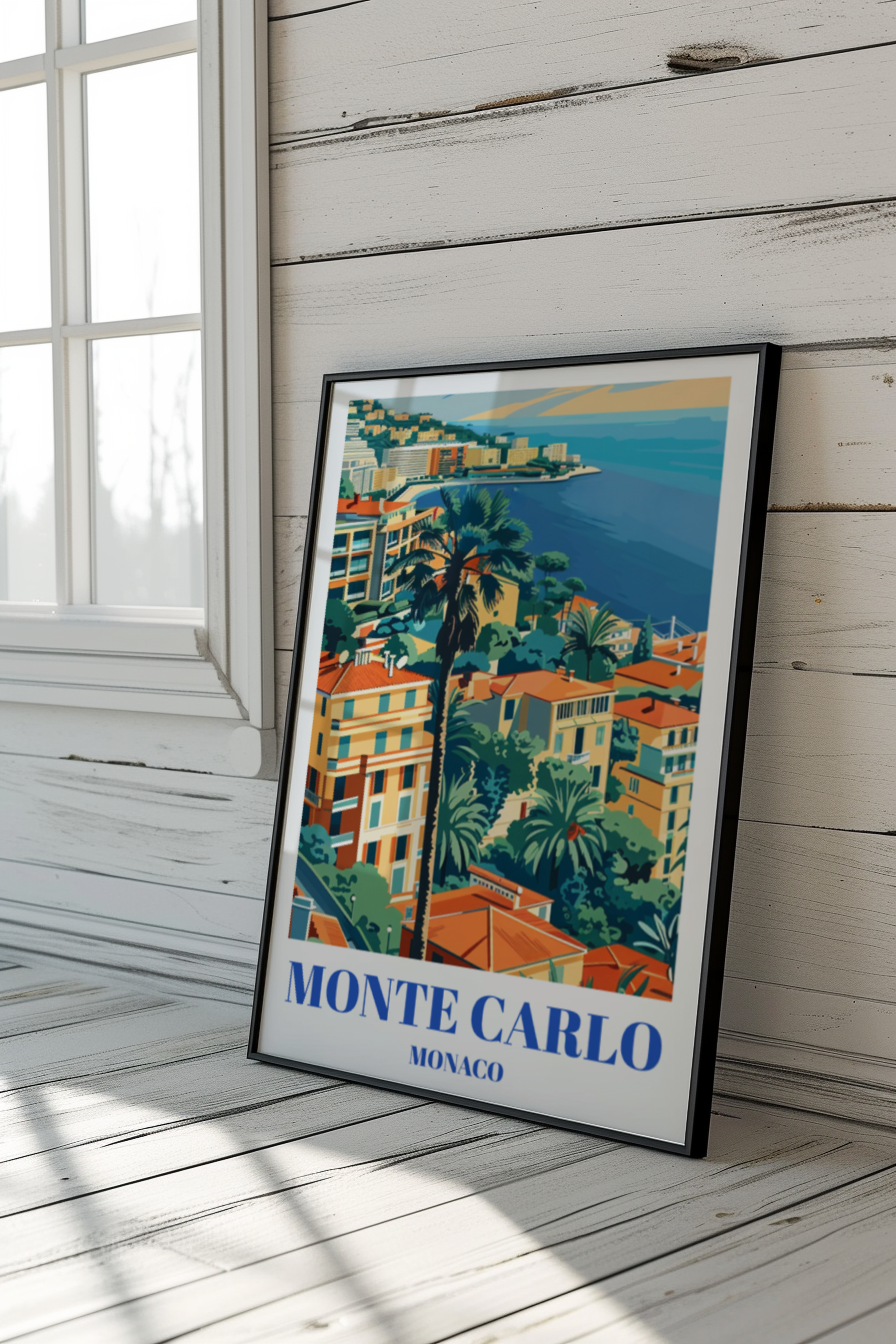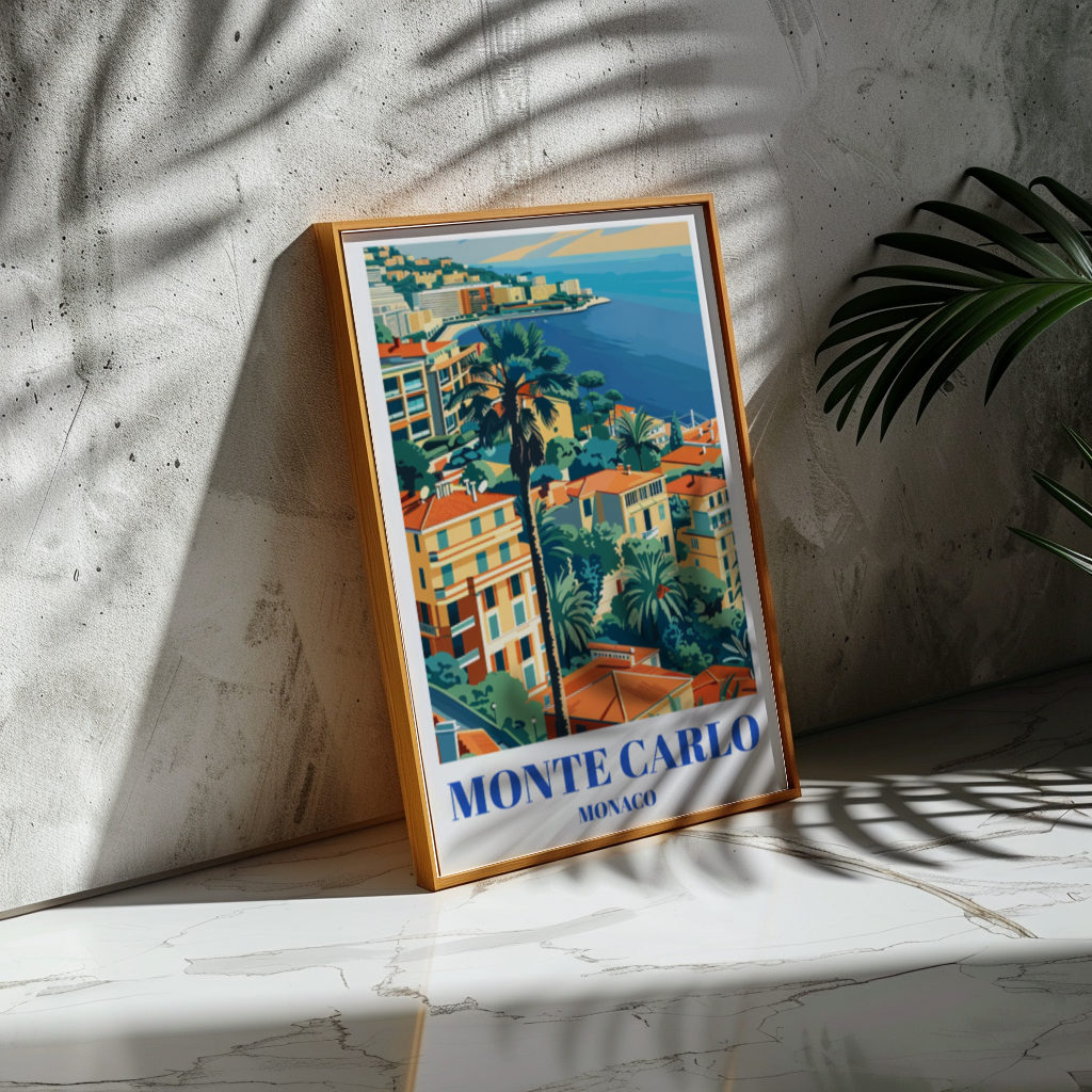 Monaco Travel Poster, Monte Carlo Skyline Art Print, French Riviera Wall Decor
