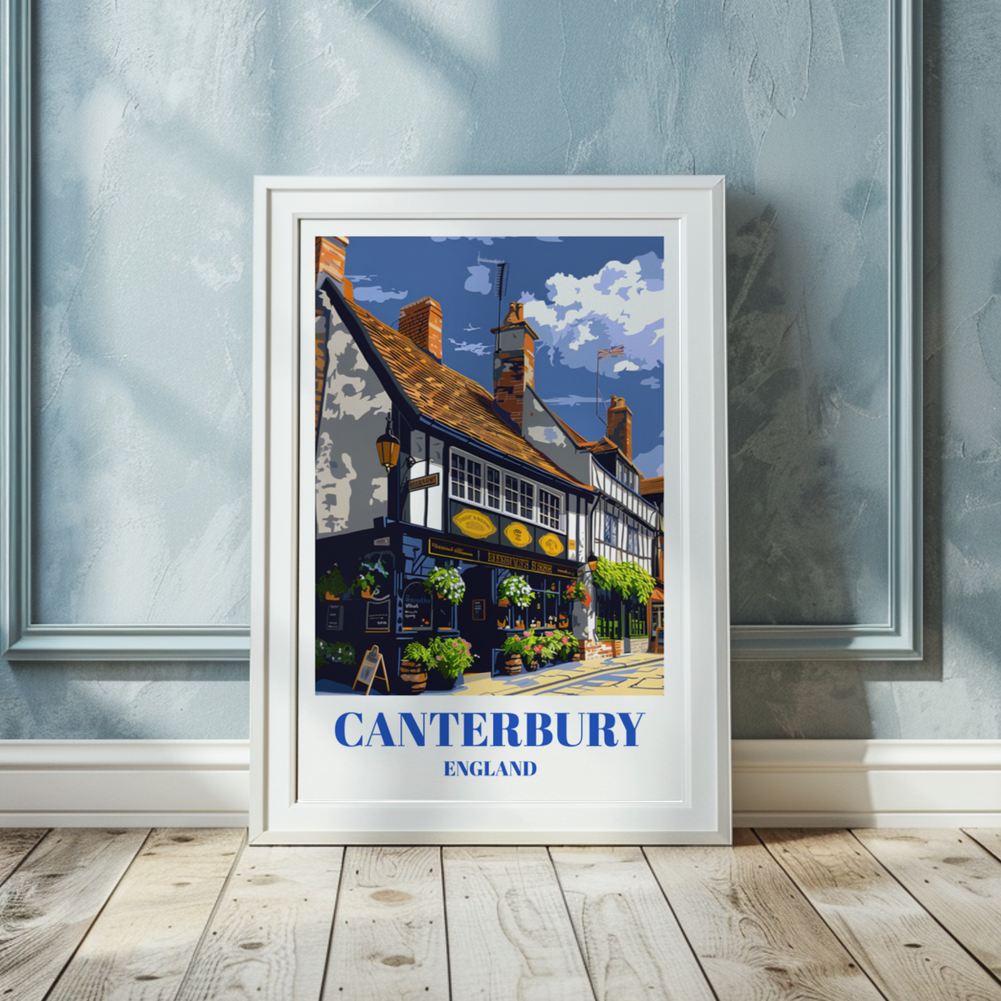 Step back in time and immerse yourself in the historic charm of Canterbury, England, with this vintage-inspired travel poster featuring an old pub. Let the cozy atmosphere, traditional architecture, and local culture of this beloved establishment transport you to another era. Perfect for pub enthusiasts and travel lovers alike, this rustic wall art print captures the essence of Canterbury's rich heritage. Whether you're seeking a unique souvenir or a thoughtful gift idea, this poster celebrates the timeless allure of English pubs and the quaint beauty of Canterbury. Let it adorn your walls and evoke fond memories of cozy evenings spent in the heart of historic England.