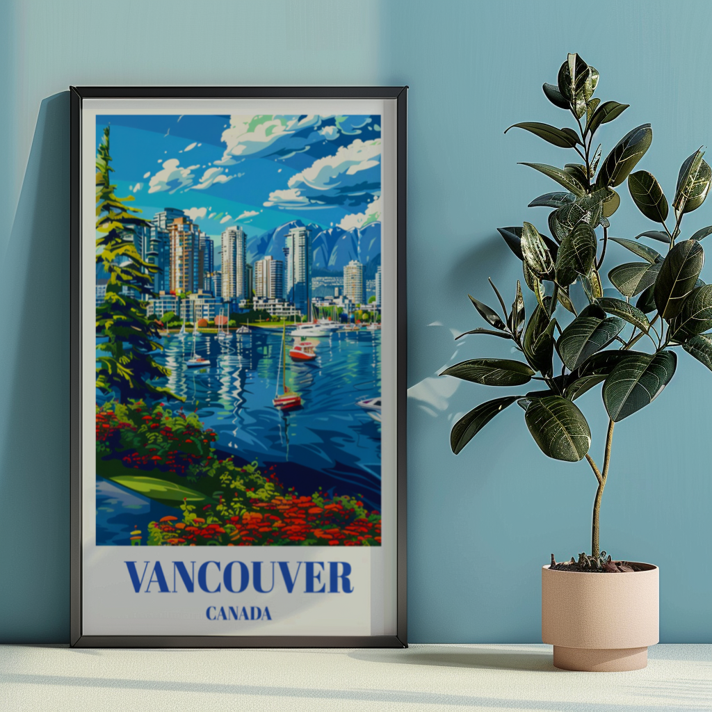 Coal Harbor Vancouver Canada Travel Poster, City Skyline Art Print,