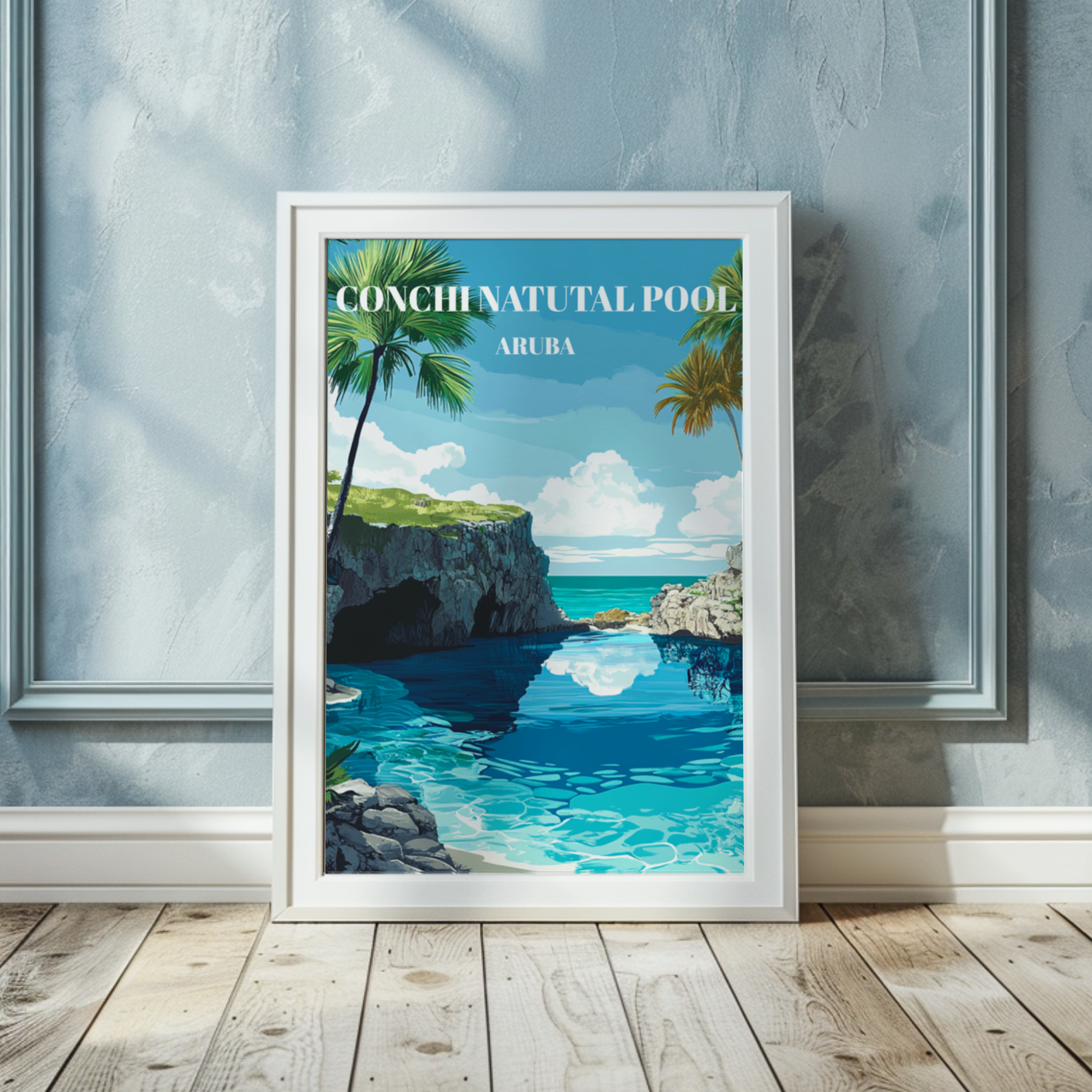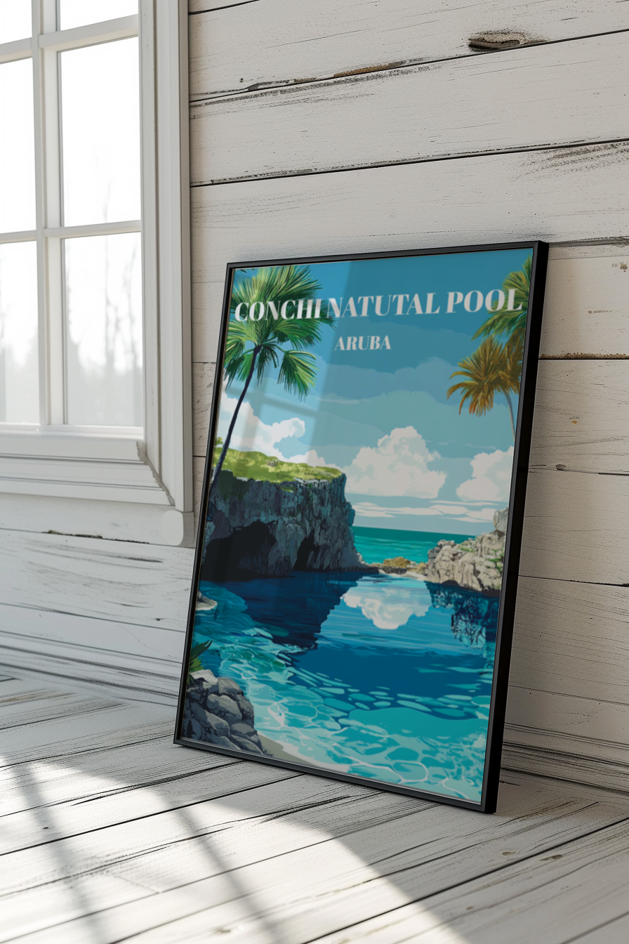 Conchi Natural Pool Aruba Travel Poster, Tropical Wall Art,