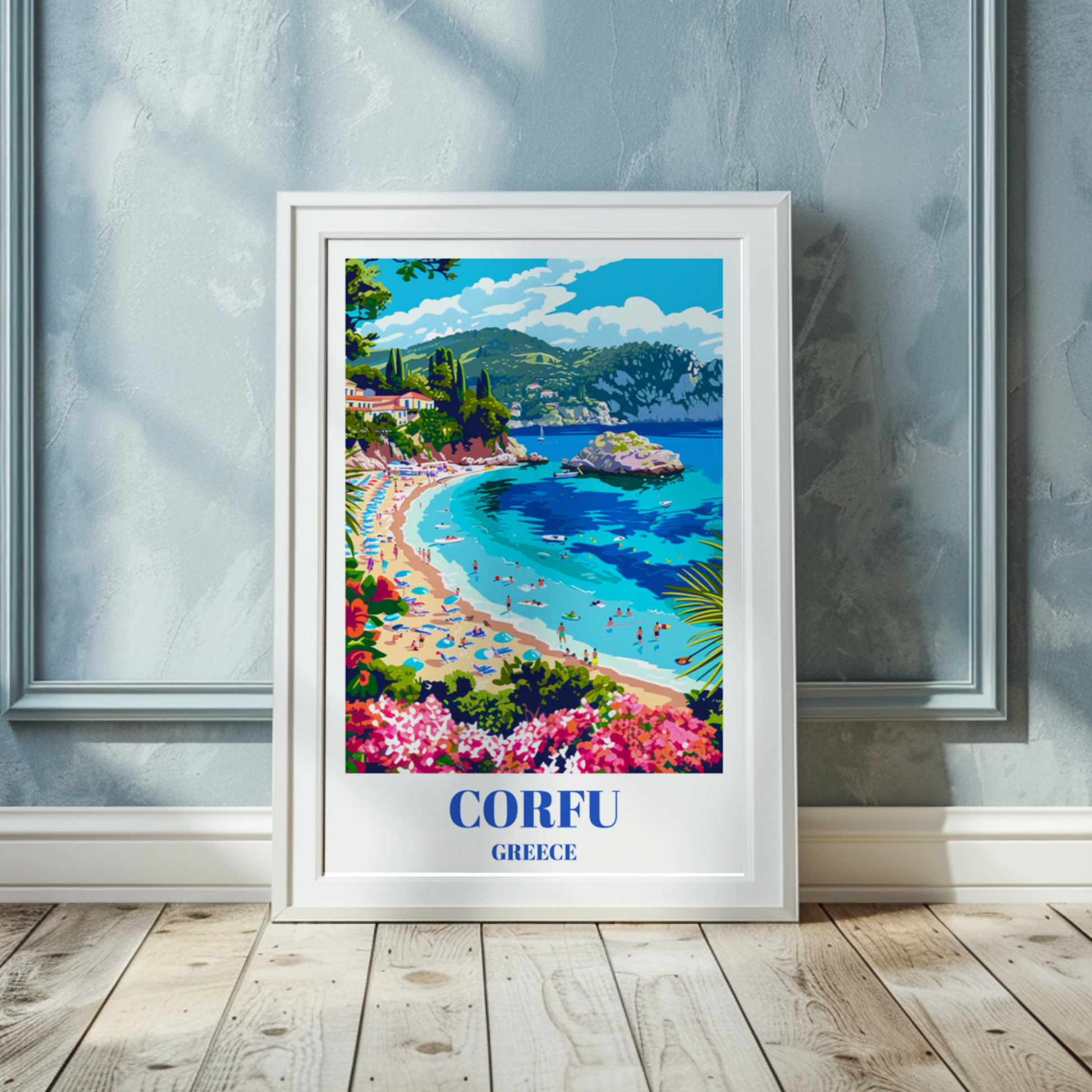 Corfu Greece Travel Poster, Greek Island Coastal Art Print, Mediterranean Wall Decor