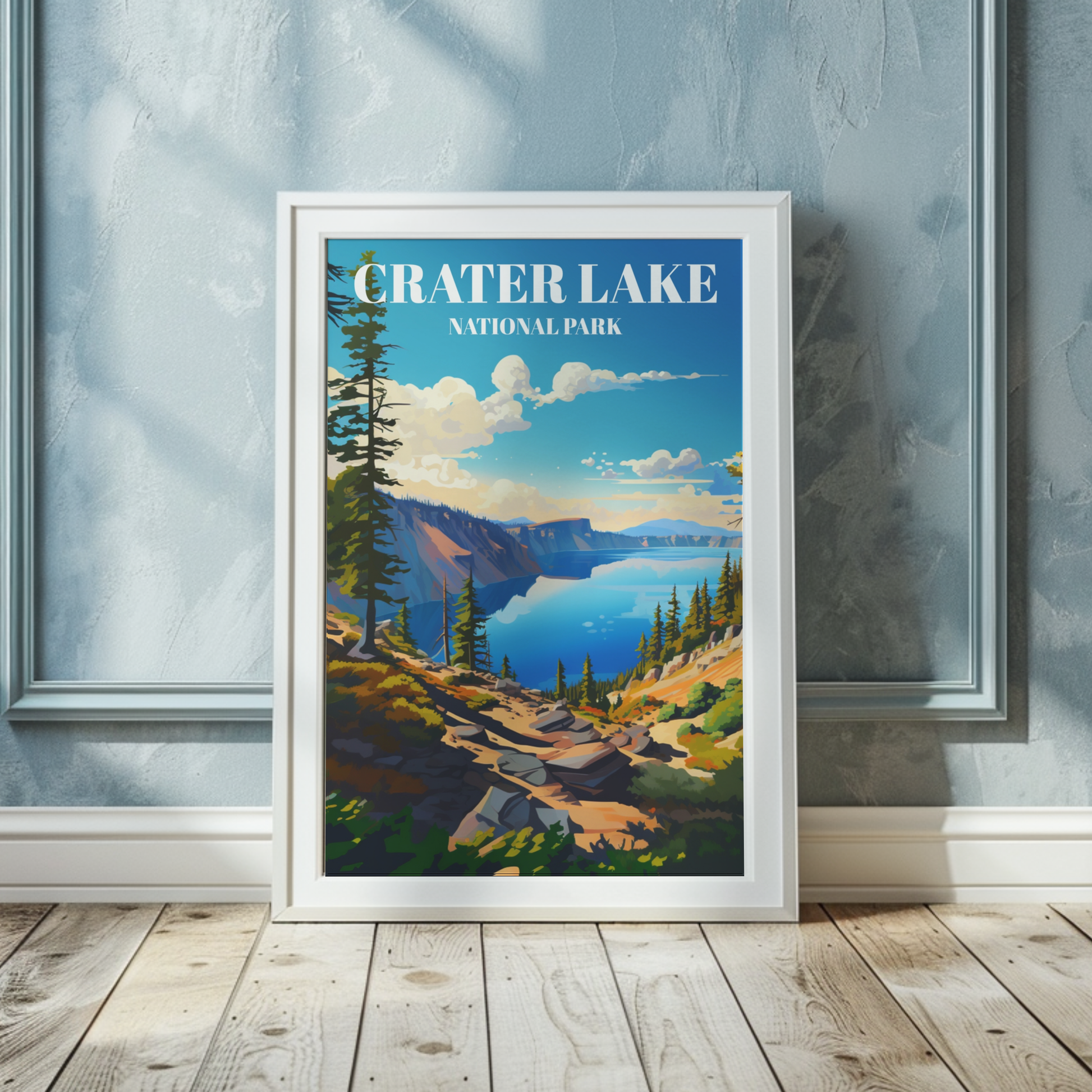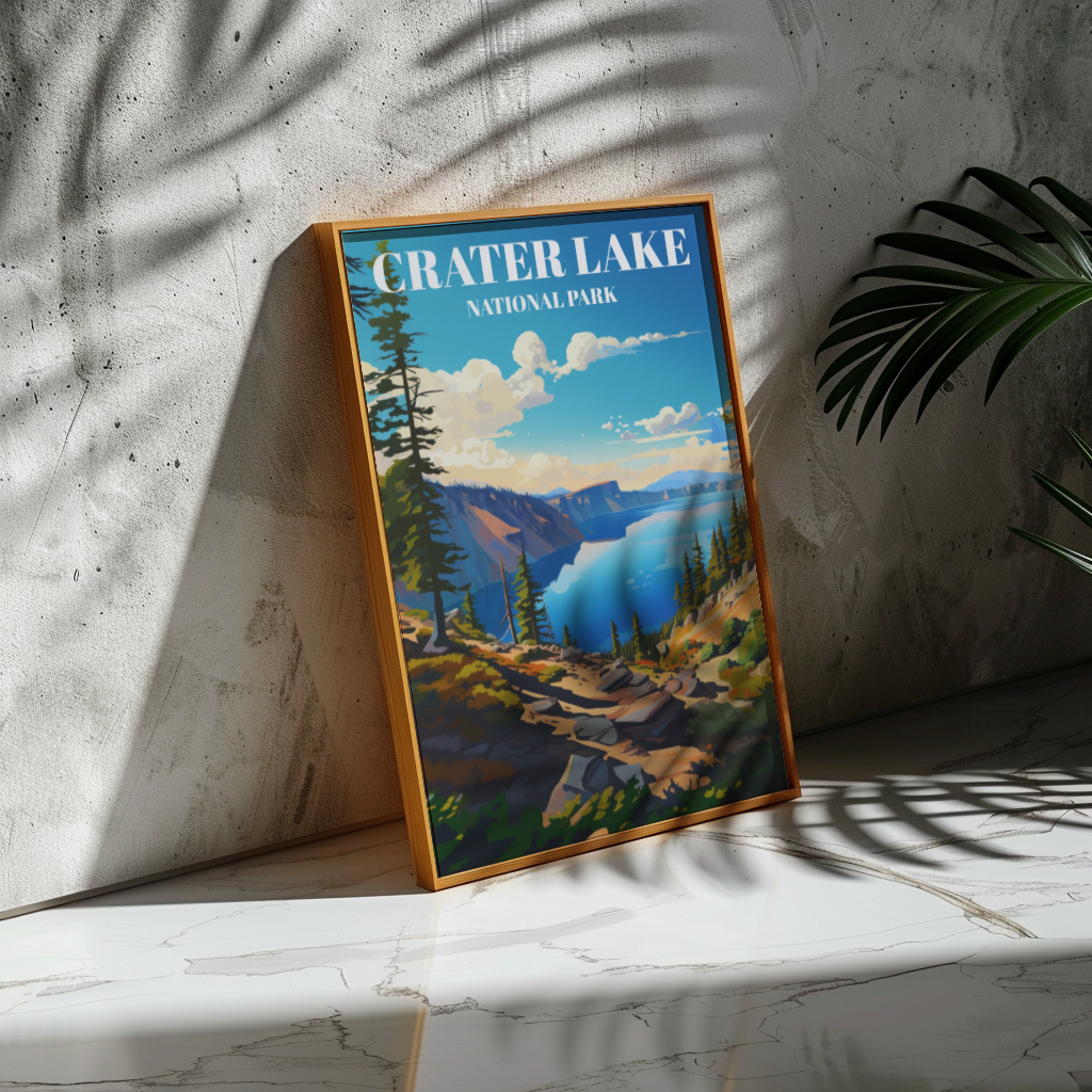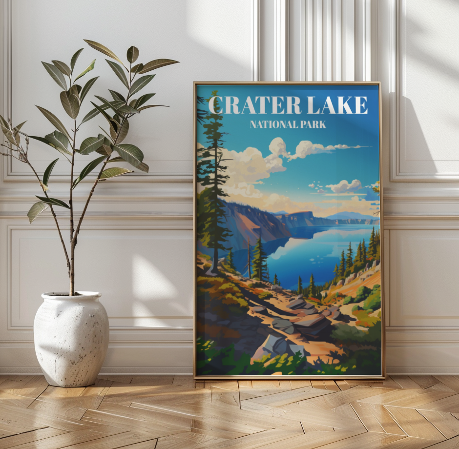 Crater Lake National Park Travel Poster: Scenic Landscape Art Print