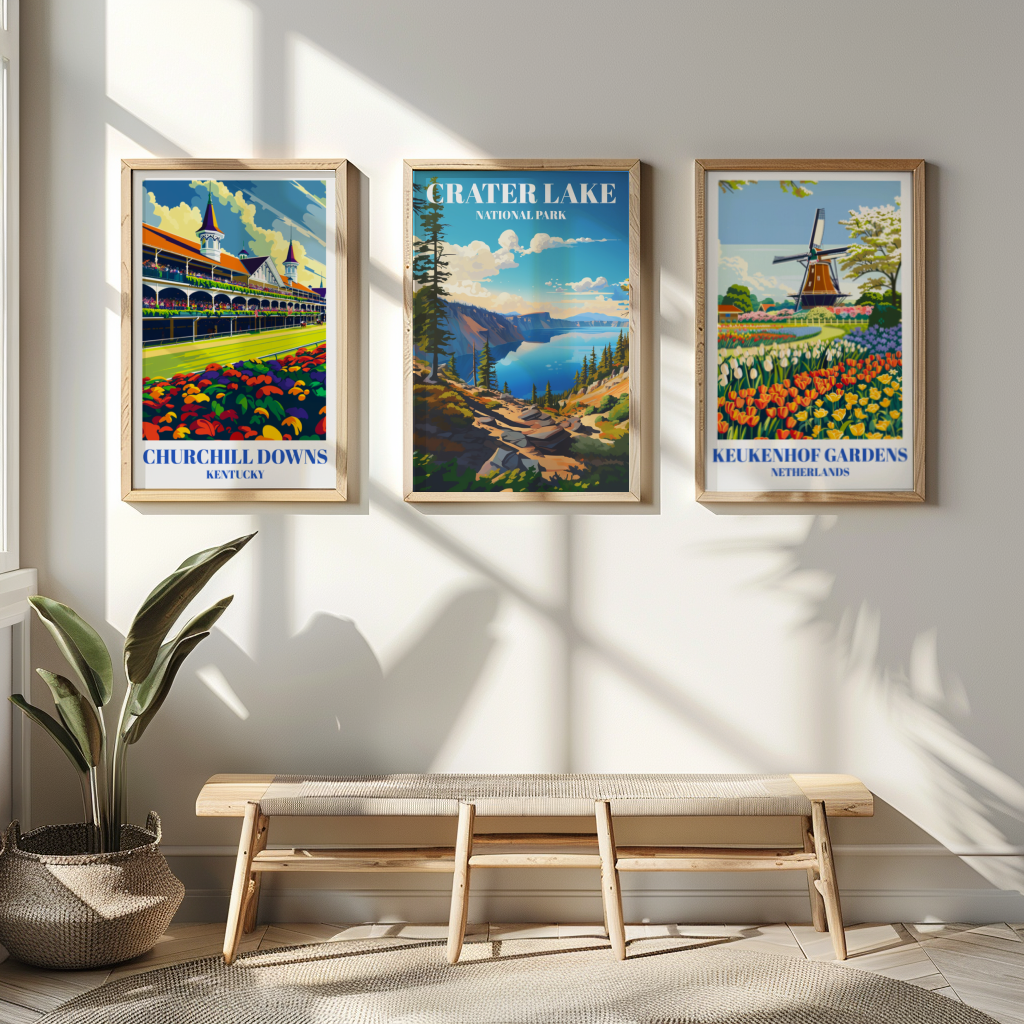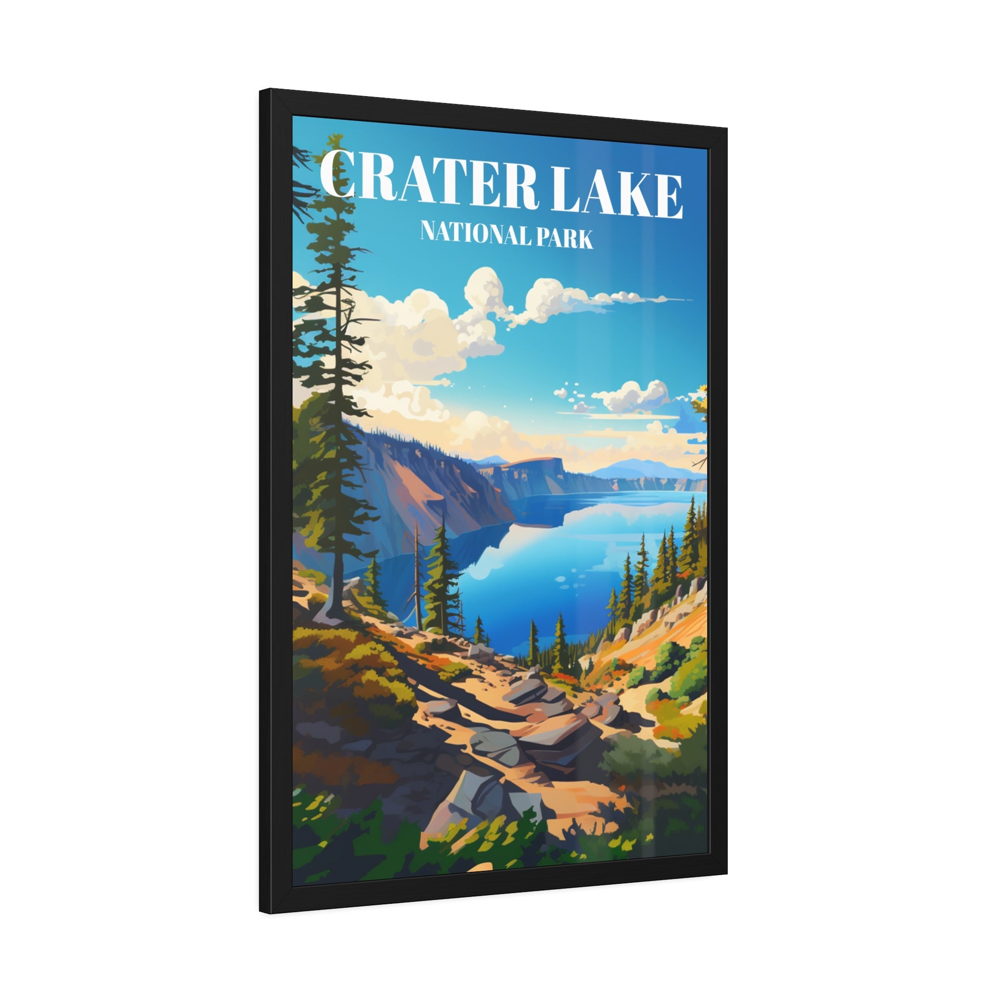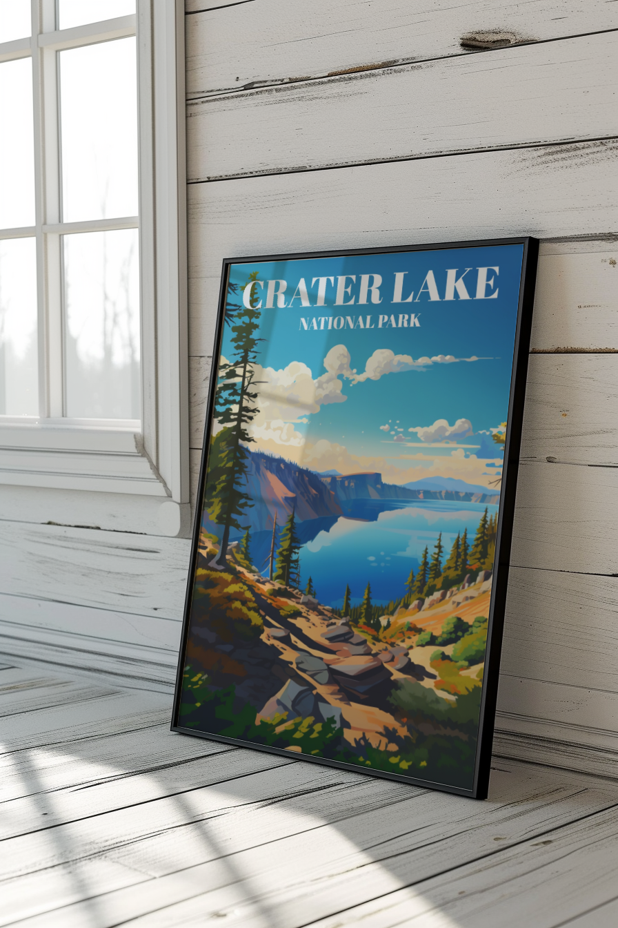 Immerse yourself in the breathtaking allure of Crater Lake National Park with our stunning travel poster. Capturing the park's pristine beauty, this poster showcases the deep blue hues of the iconic Crater Lake, nestled within the awe-inspiring volcanic caldera. The crystalline waters mirror the surrounding cliffs and evergreen forests, creating a scene of unparalleled natural splendor. Bring the magic of Crater Lake into your home or office and let this poster be a constant reminder of the majestic wonders waiting to be explored in one of America's most cherished national parks. Crafted with care and attention to detail, it's the perfect piece for nature enthusiasts and wanderlust seekers alike.