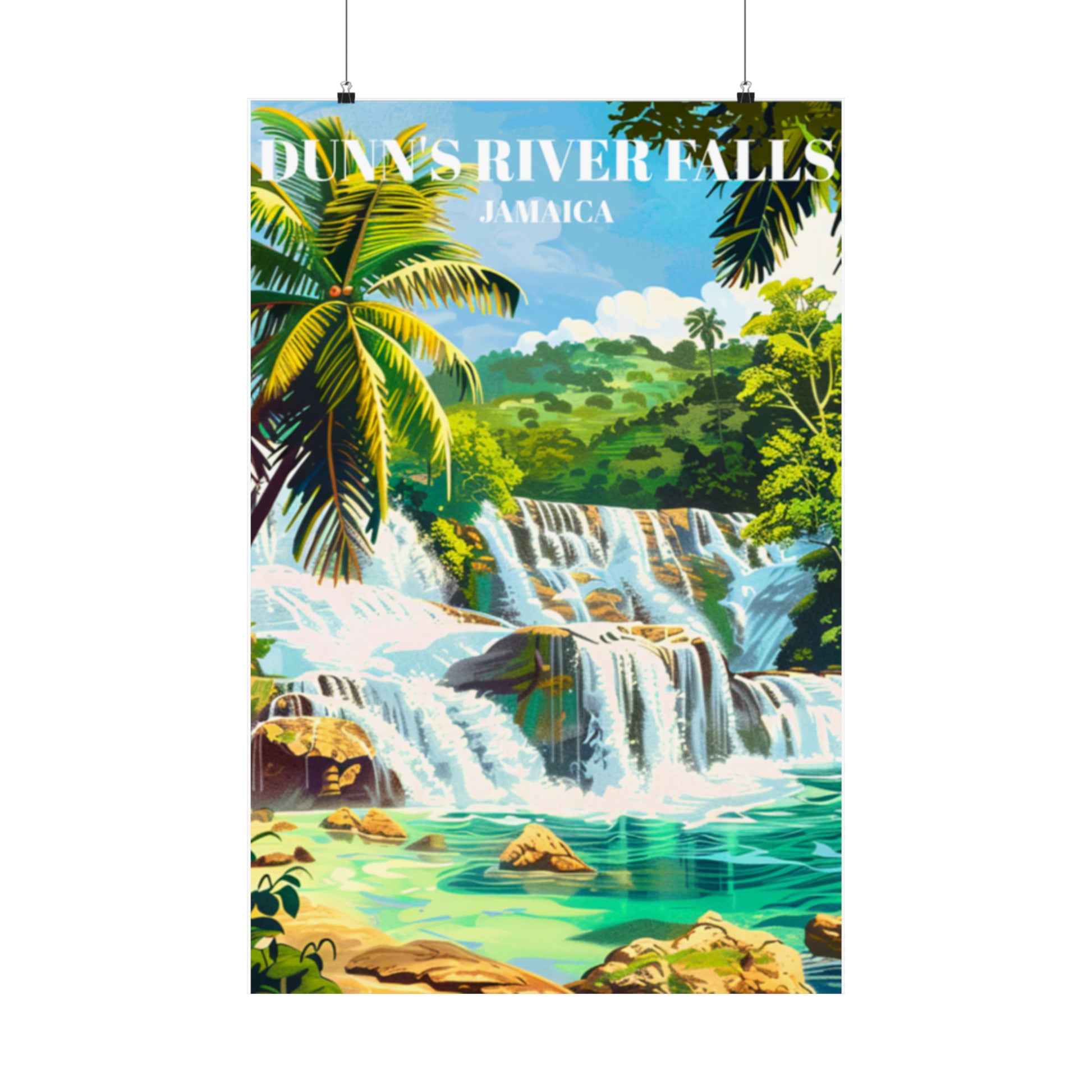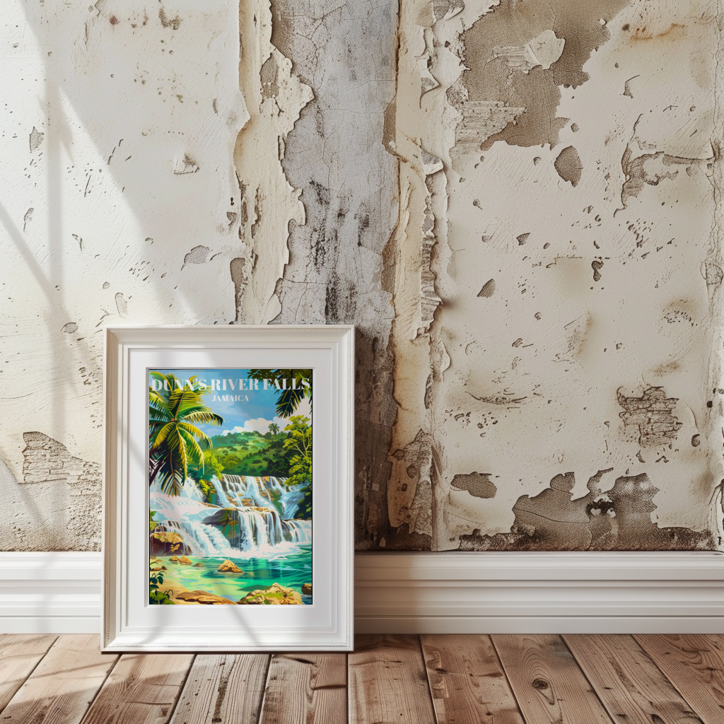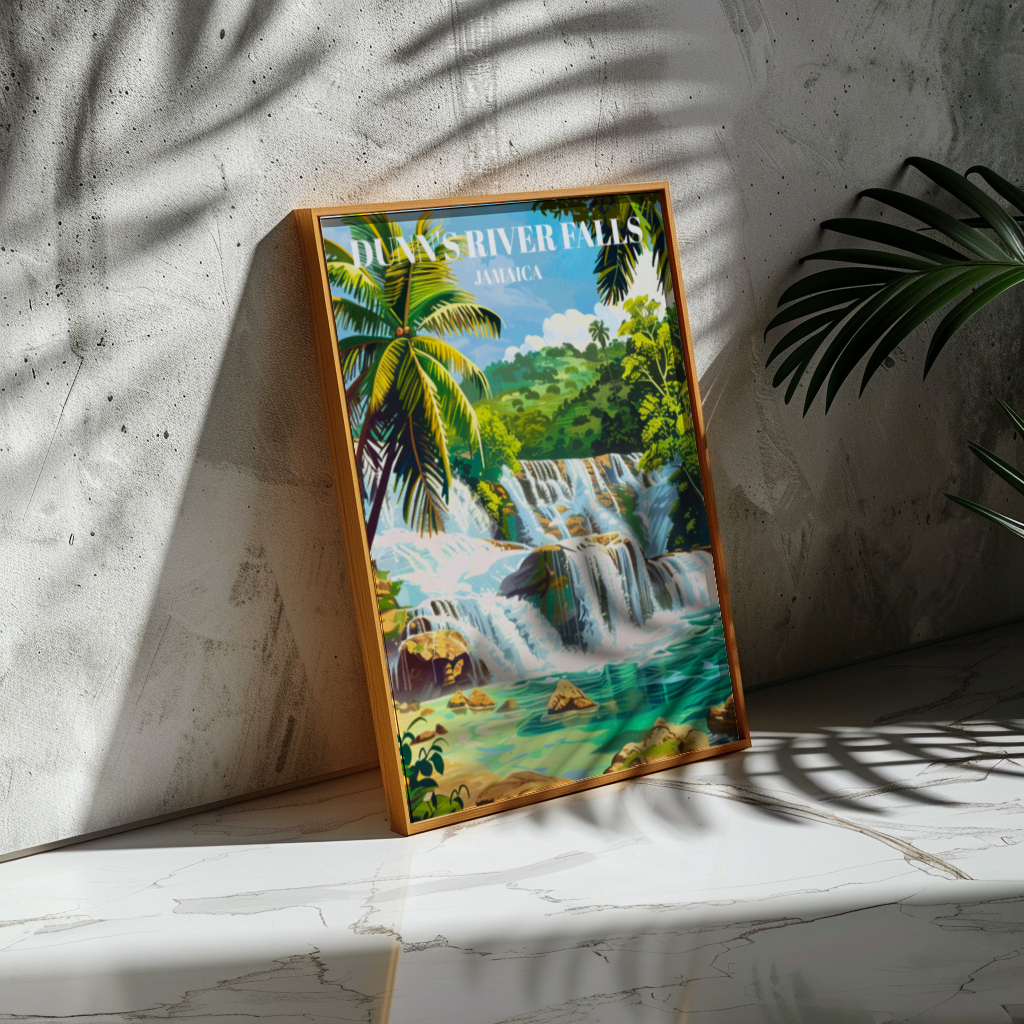 Immerse yourself in the natural beauty of Dunn's River Falls, Jamaica with this captivating travel poster. Featuring the iconic cascading waterfalls nestled in lush greenery, this artwork brings the spirit of adventure and tropical allure into your home. Transport yourself to the vibrant landscapes of Ocho Rios with every glance, as the vivid colors and dynamic composition evoke memories of Caribbean vacations. Whether you're a nature enthusiast, a lover of travel, or simply seeking a stunning statement piece for your decor, this Dunn's River Falls poster is sure to delight. Perfect for adding a touch of island charm to any space, it's also a unique gift for fellow adventurers and Jamaica enthusiasts. Choose between framed or unframed options to suit your style and bring the essence of Jamaican paradise into your living space today!