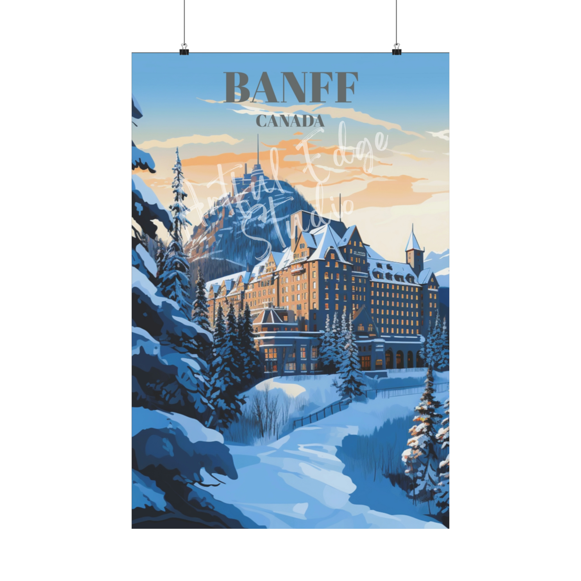 Fairmont Hotel in Banff, Canada Travel Poster - Banff National Park Wall Decor