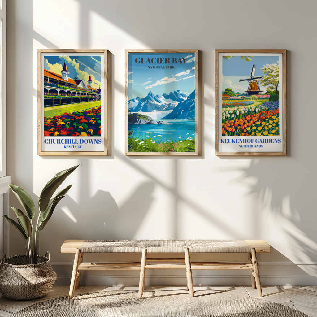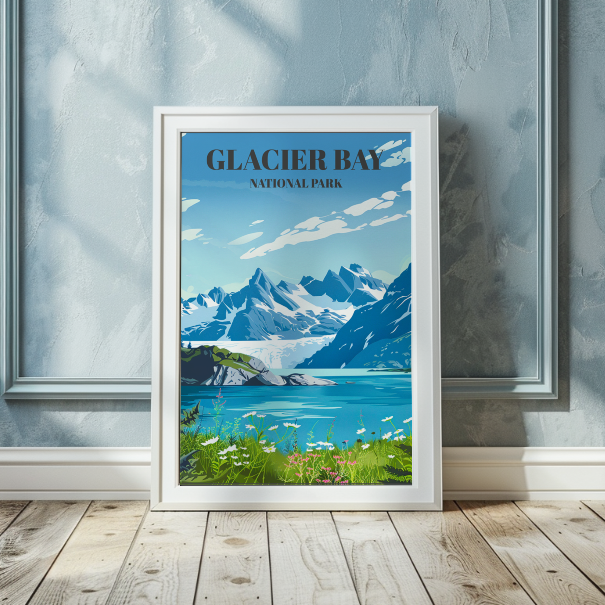 Step into the awe-inspiring beauty of Glacier Bay National Park and Preserve with our captivating travel poster. Immerse yourself in the pristine wilderness of Alaska as you gaze upon majestic glaciers, serene fjords, and lush coastal forests. This poster is more than just wall art—it's a gateway to adventure and exploration. Perfect for nature lovers, outdoor enthusiasts, and anyone seeking to bring the spirit of the wild into their home decor. Crafted with care and attention to detail, our poster is printed on high-quality paper using vibrant, fade-resistant inks to ensure lasting beauty. Whether you're reminiscing about past adventures or dreaming of future ones, our Glacier Bay National Park poster will transport you to the heart of one of America's most breathtaking landscapes. Add a touch of rustic charm and natural wonder to your living space today