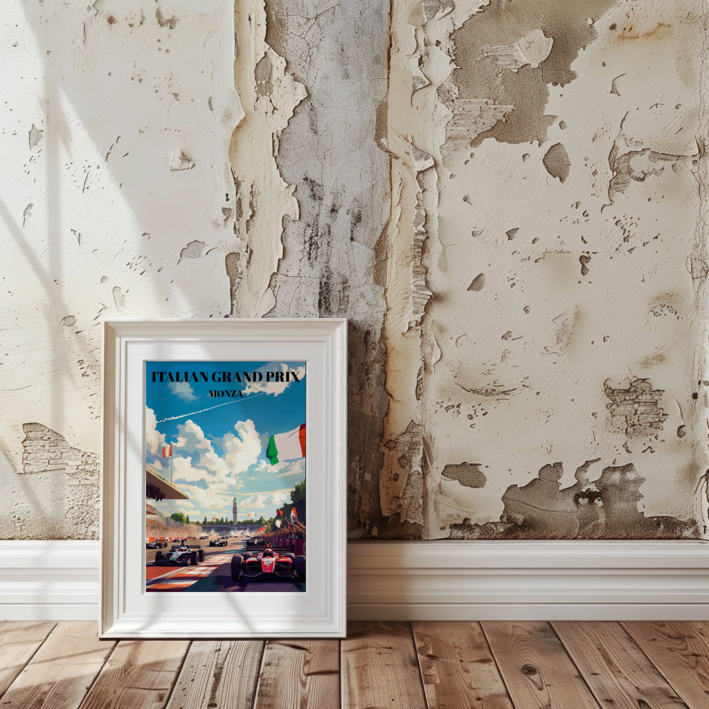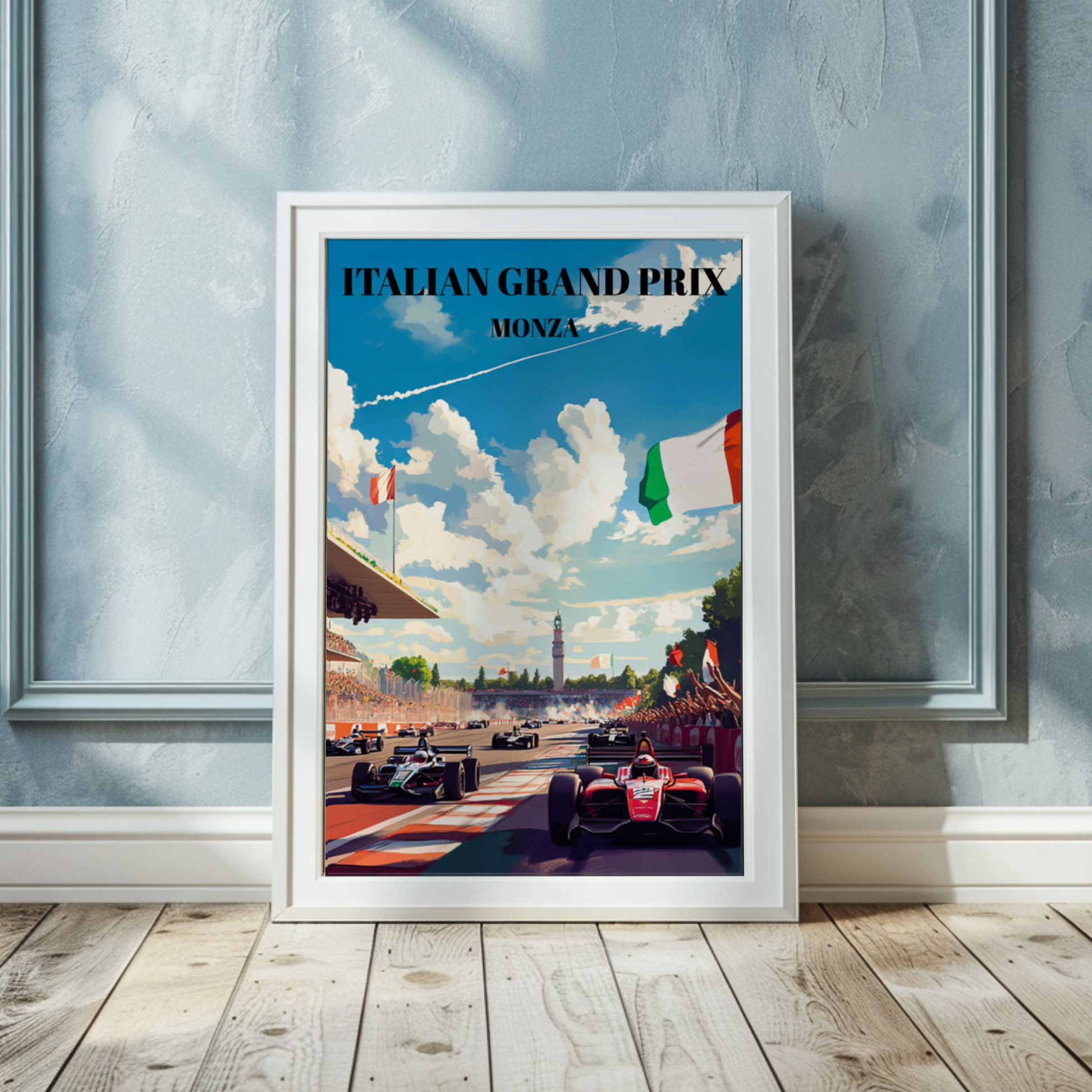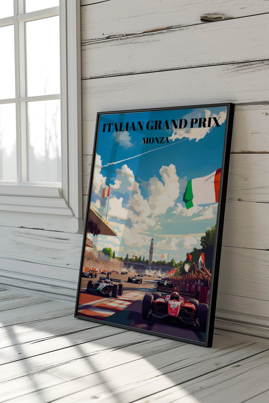 Celebrate the legendary Italian Grand Prix with this stunning Monza travel poster! Featuring the iconic Monza Circuit, this Formula 1 art print is perfect for motorsport fans and F1 enthusiasts. With its vintage design, it adds a classic racing vibe to any space—whether it's your living room, office, or man cave. This unique Monza track poster makes an ideal gift for lovers of Formula One and Italian racing history. Printed on high-quality paper, it’s a must-have addition to any F1 fan's collection.