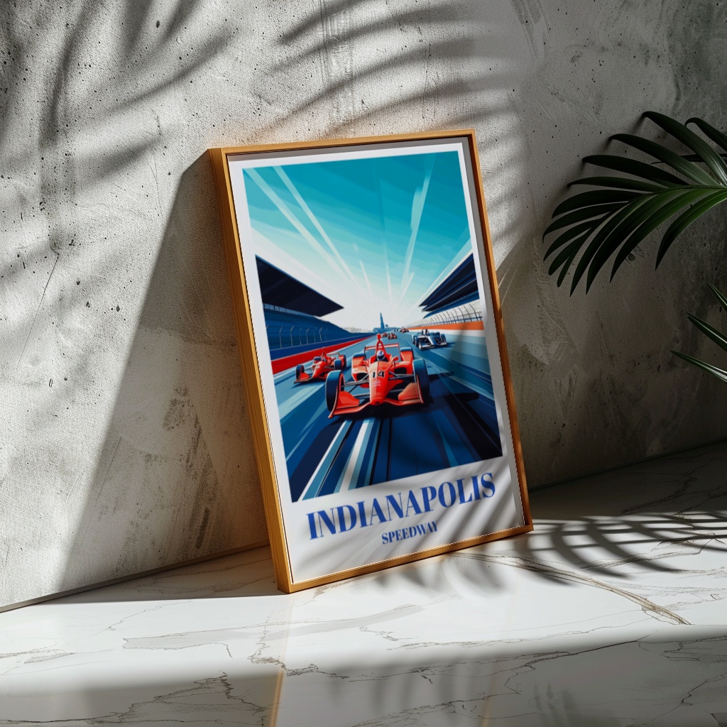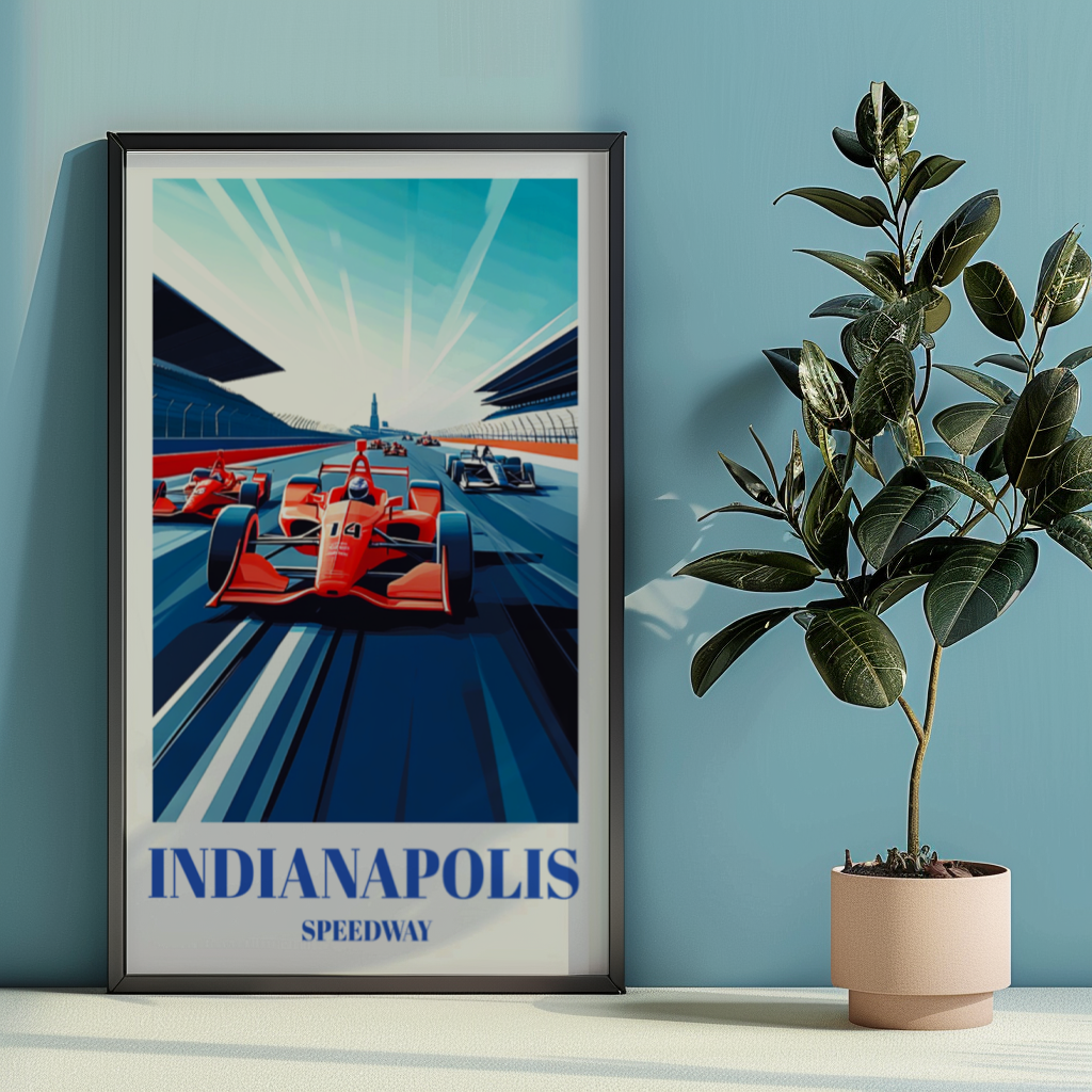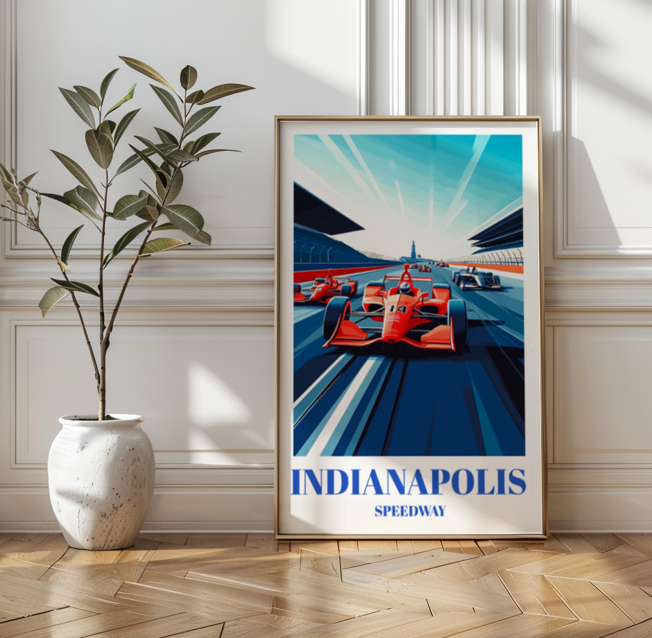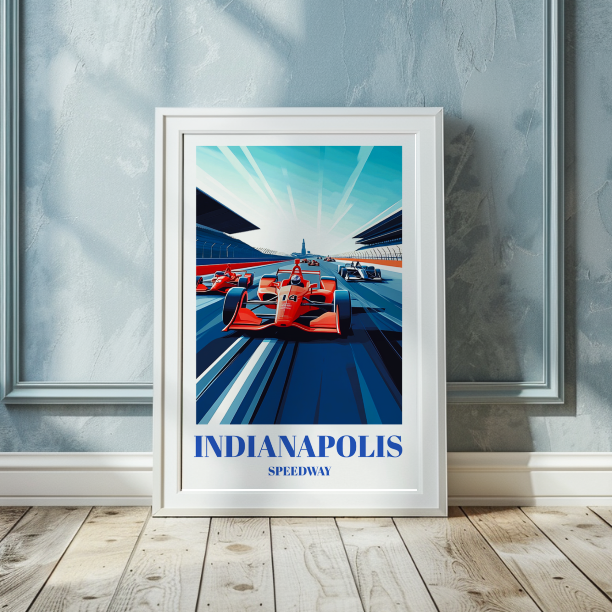 Bring the thrill of the Indianapolis 500 to your space with this stunning travel poster featuring the iconic Indianapolis Motor Speedway. Perfect for IndyCar racing fans, this vintage-inspired wall art captures the excitement of the Greatest Spectacle in Racing. Ideal for motorsports enthusiasts, this Indy 500 race track print adds a retro touch to any home, office, or garage decor. A great gift for car lovers, collectors, and fans of classic American racing. Celebrate Indy 500 history with this unique racing memorabilia piece!