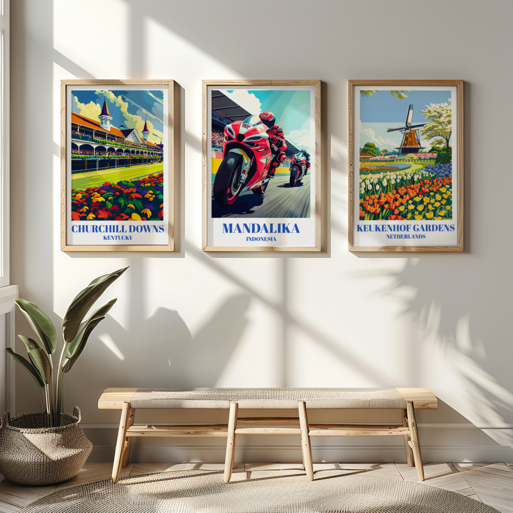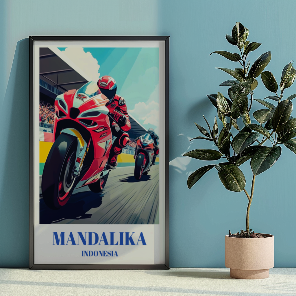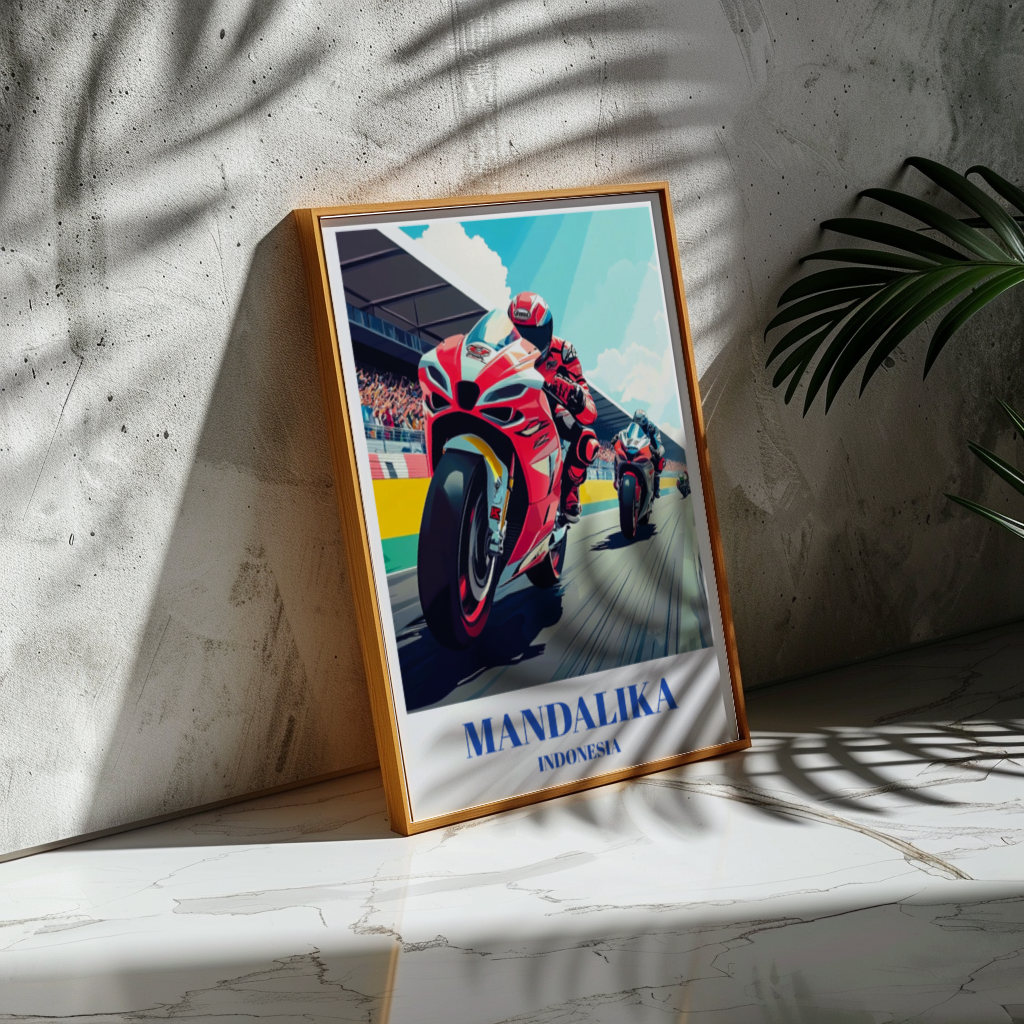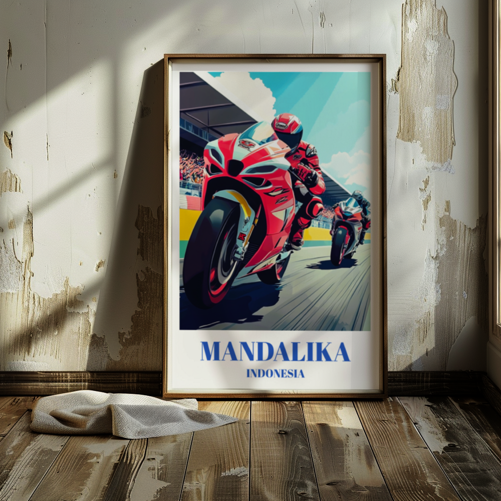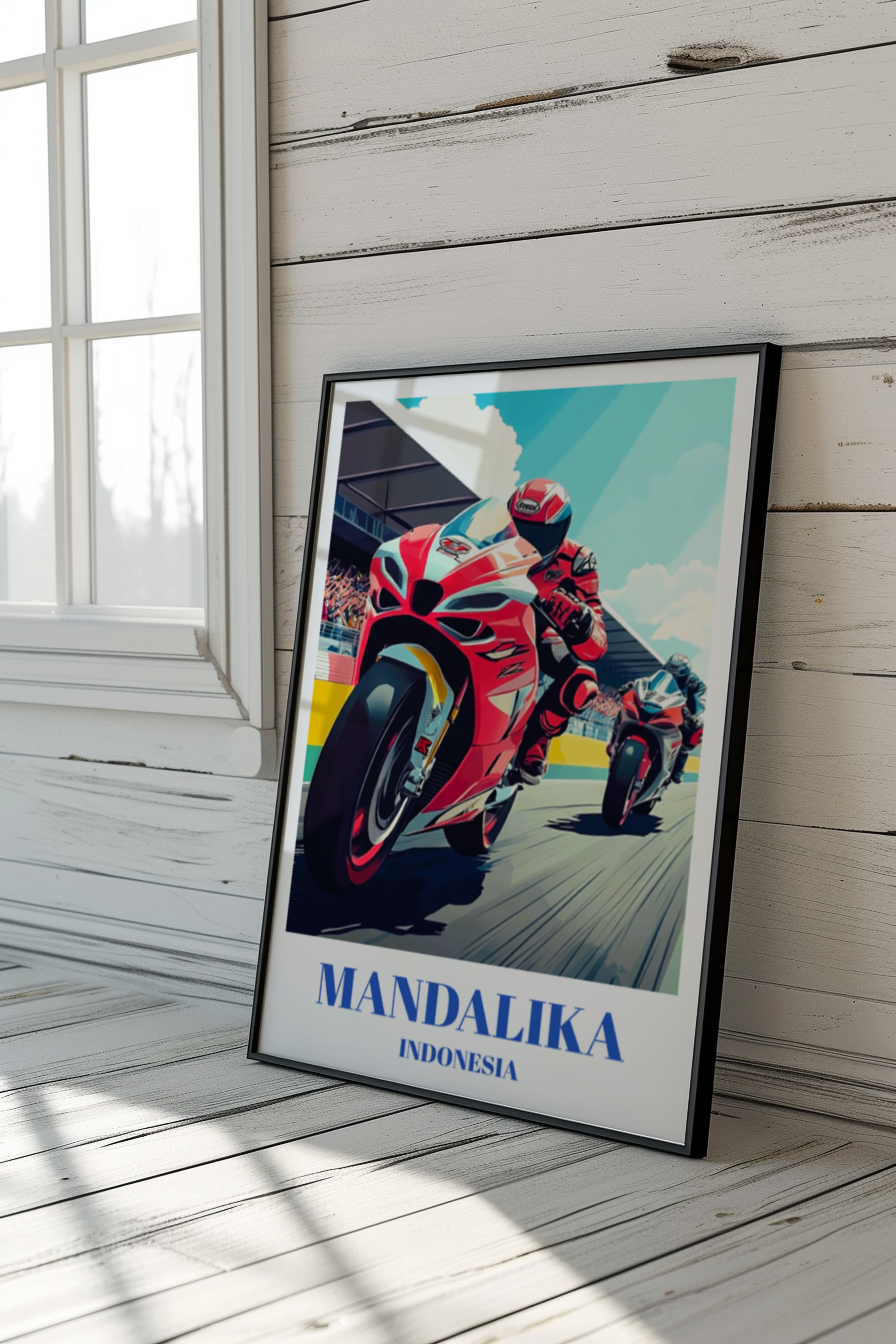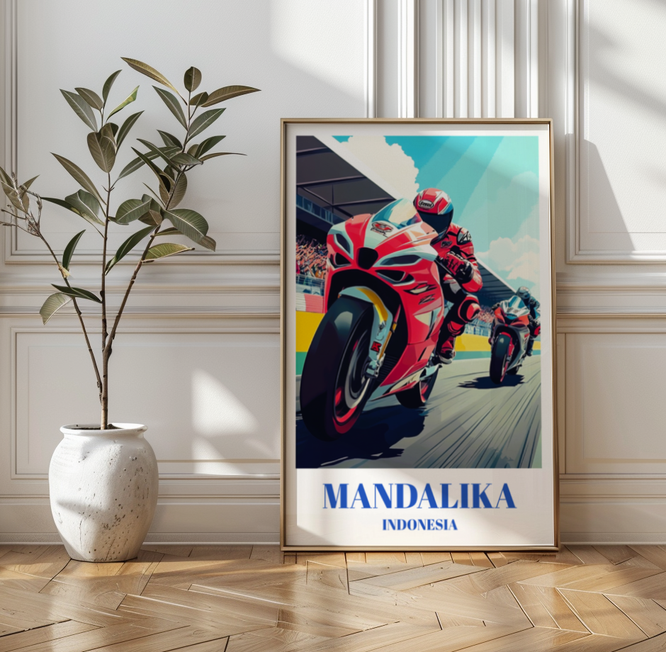 Celebrate the excitement of the Indonesia Pertamina Mandalika International Circuit with this stunning travel poster! Perfect for MotoGP fans and motorsport enthusiasts, this high-quality artwork captures the vibrant energy of Lombok’s world-famous racing track. Ideal as wall decor for offices, living rooms, or game rooms, it’s a great gift for travelers, racing lovers, and collectors of unique art. Featuring bold colors and intricate details, this poster brings the beauty and thrill of Indonesia’s premier circuit to life.