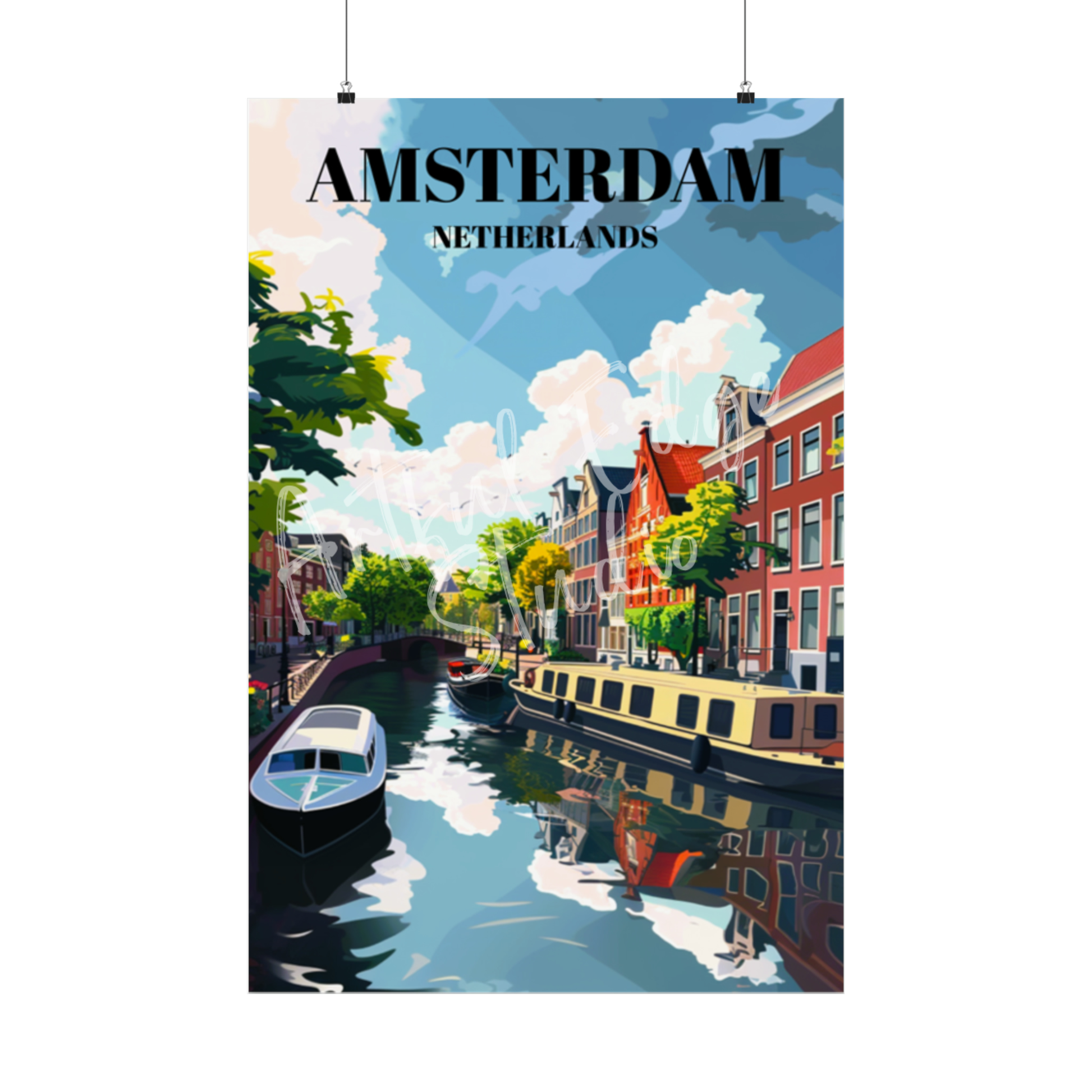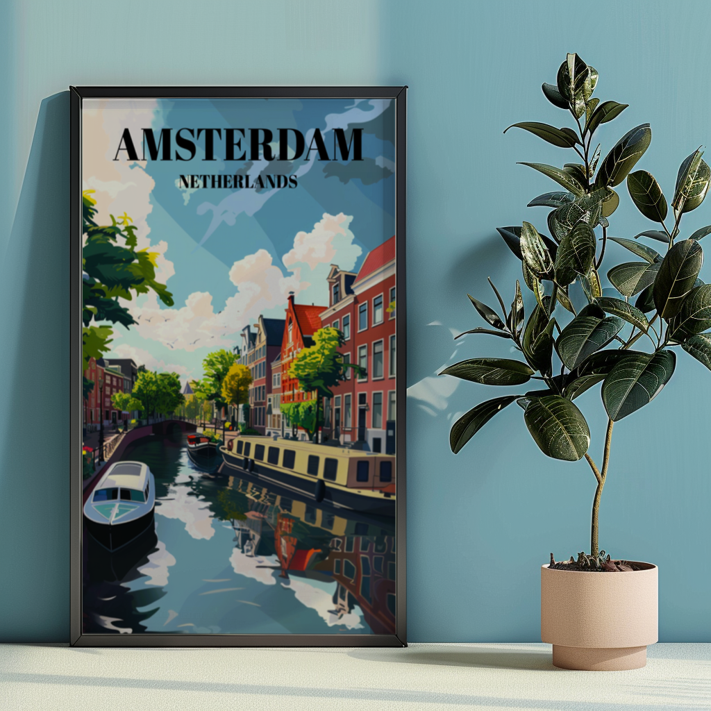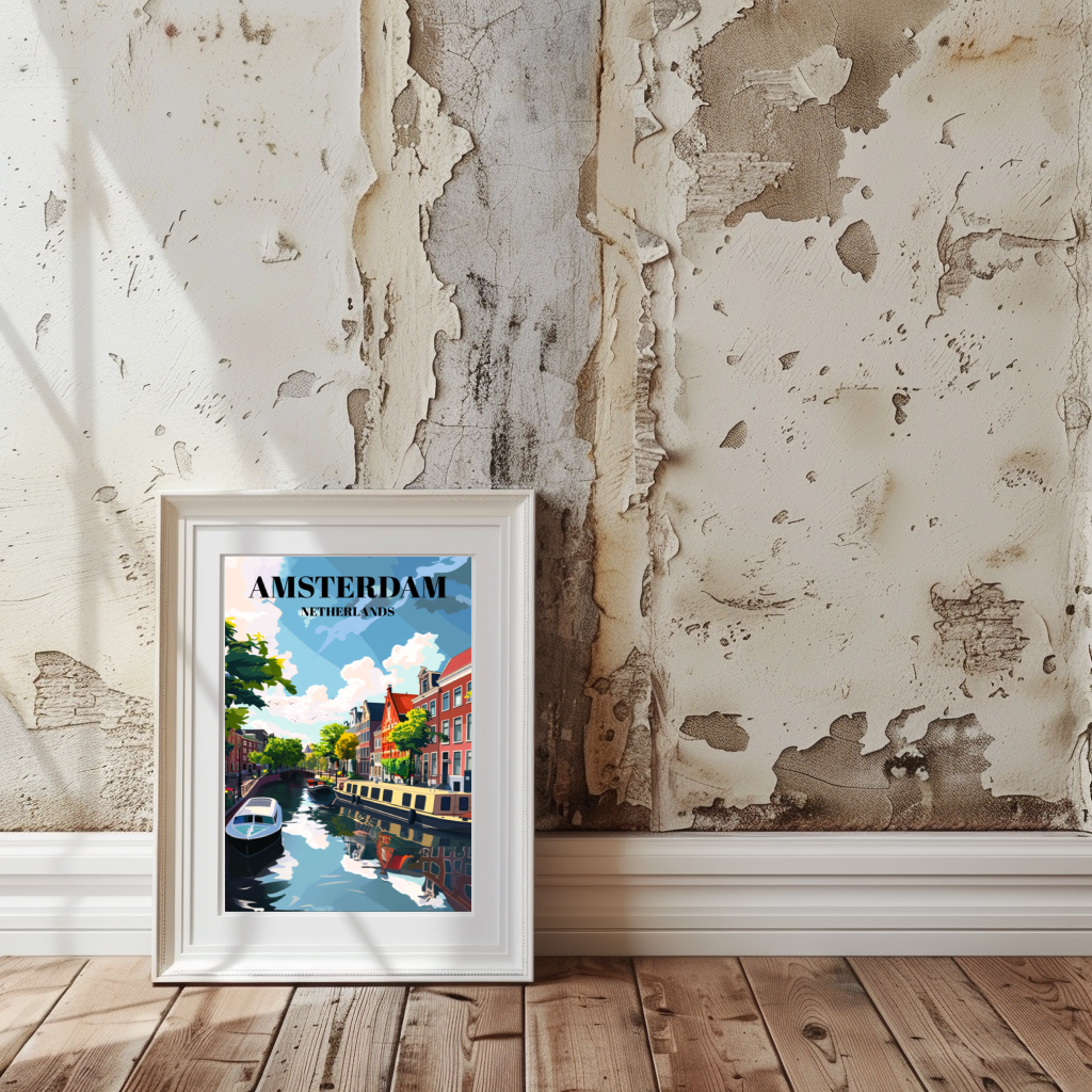 Immerse yourself in the timeless charm of Amsterdam's canals and the quaint streets of Jordaan with this captivating travel poster. Featuring the iconic Dutch cityscape, this print beautifully captures the essence of Amsterdam's picturesque canal scene. Whether you're a lover of European cityscapes, Dutch architecture, or simply seeking unique wall art, this poster is sure to delight. Add a touch of Holland to your home decor or gift it as a cherished souvenir of your travels.