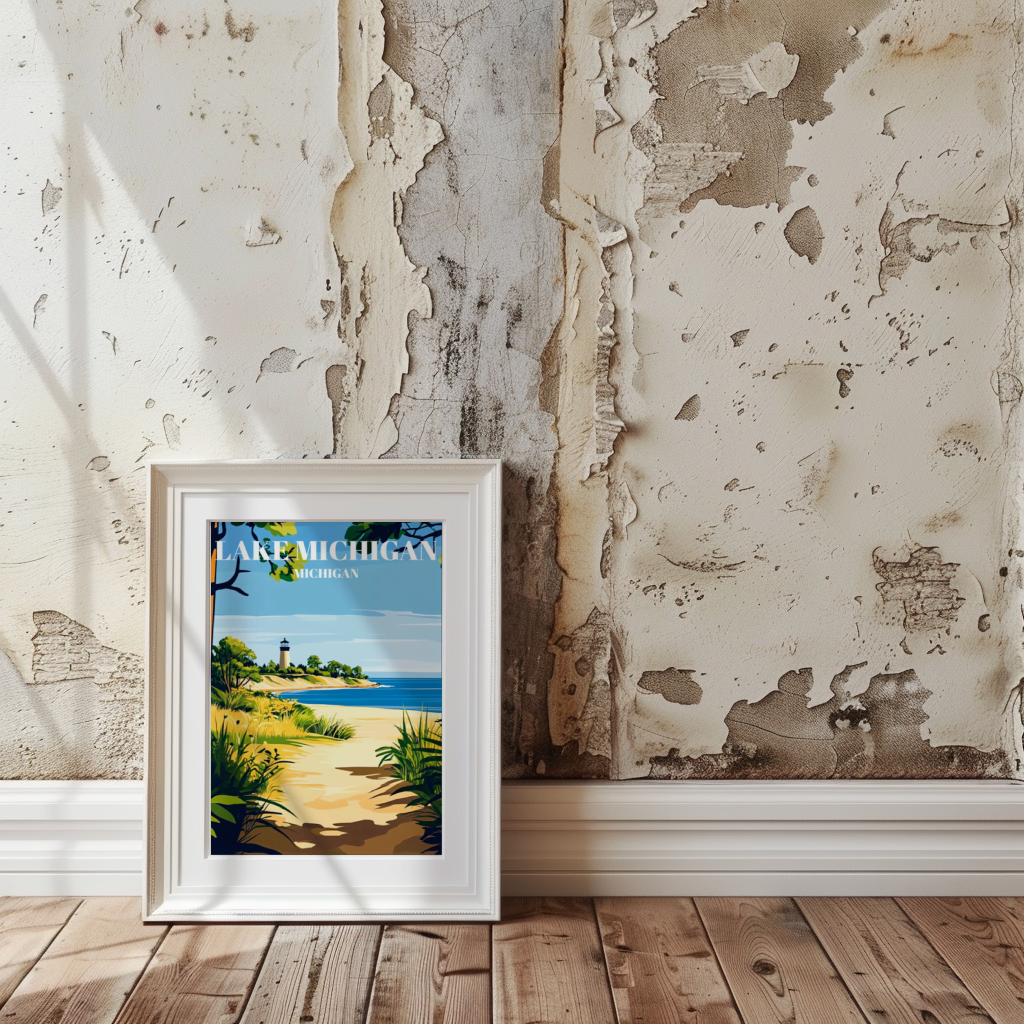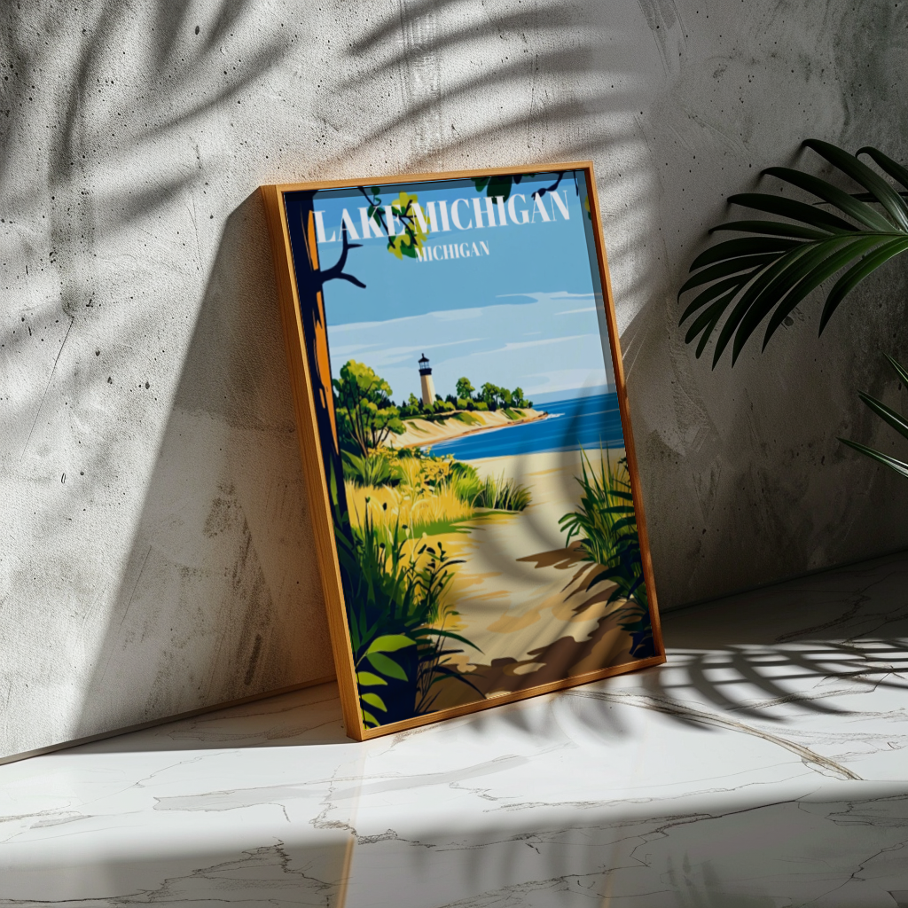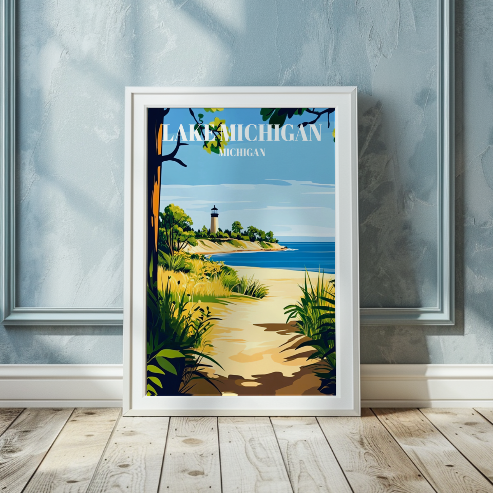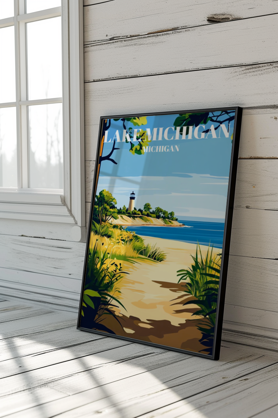 Lake Michigan Travel Poster, Great Lakes Wall Art Print, Coastal Home Decor,