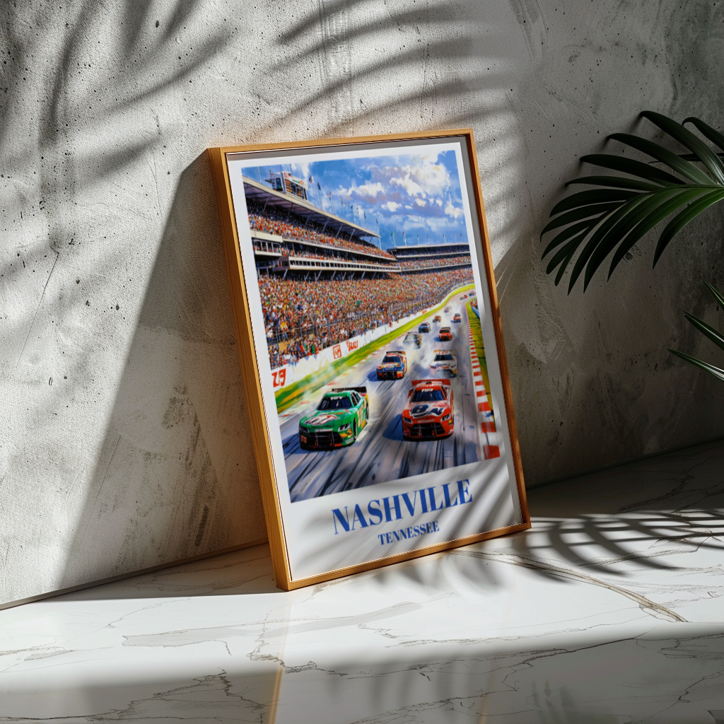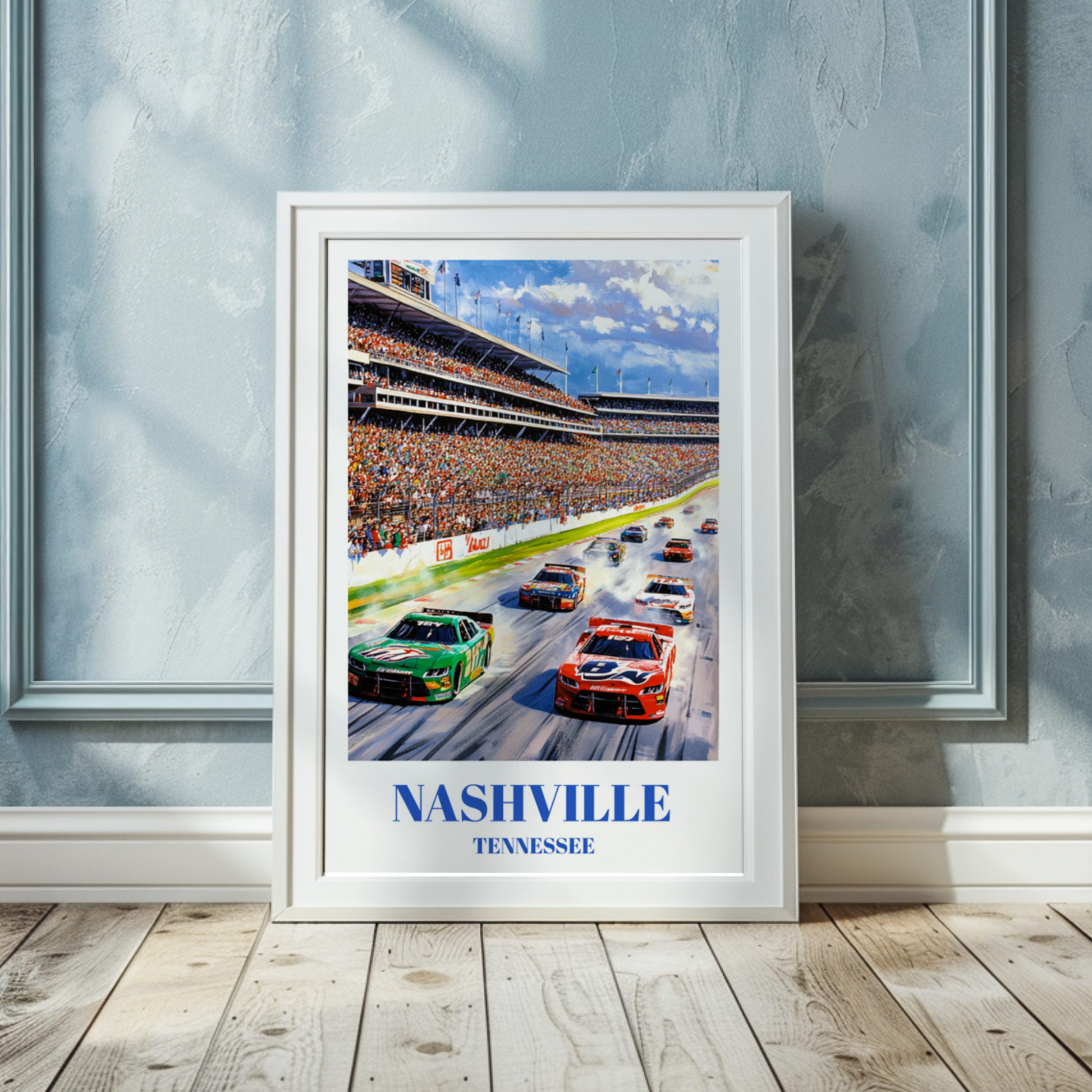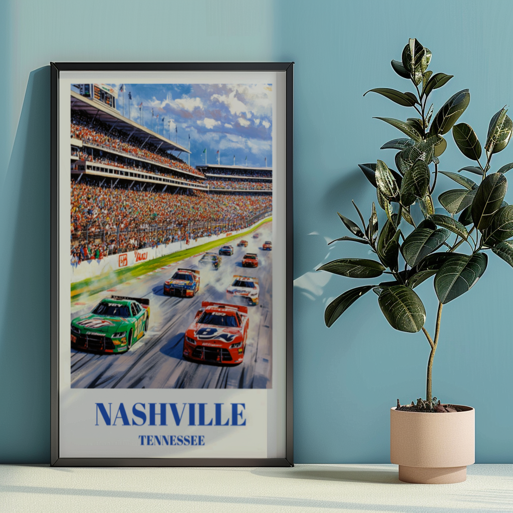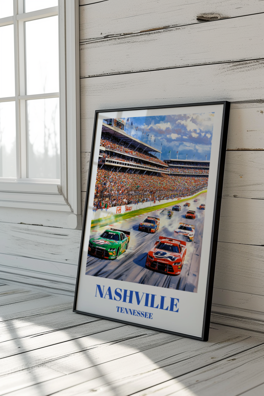 Nashville Tennessee Speedway Travel Print, Retro Racing Wall Art, Race Track Print