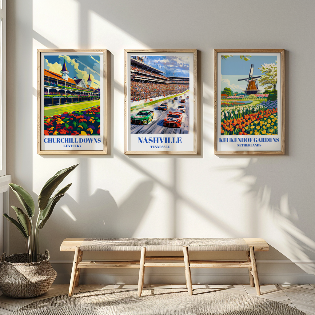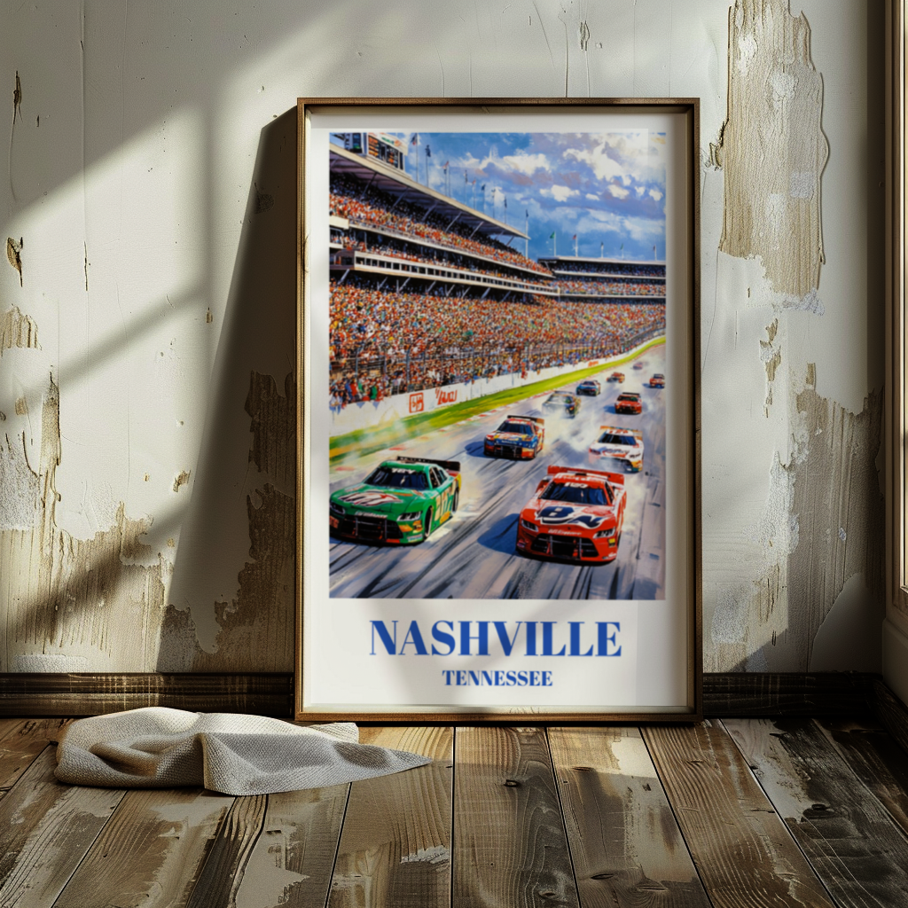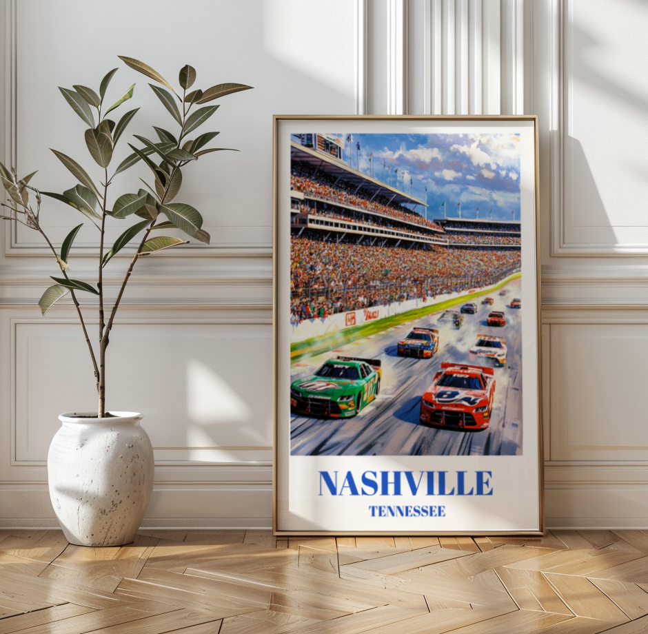 Celebrate the thrill of Nashville Superspeedway with this stunning travel poster, perfect for NASCAR fans, racing enthusiasts, and motorsports lovers. Featuring a vintage-style illustration of Tennessee’s iconic race track, this high-quality print is ideal for man caves, garages, offices, or racing-themed decor. Whether you love stock car racing, IndyCar, or high-speed action, this retro motorsports wall art makes a great gift for race fans and a unique way to showcase your passion for the superspeedway experience!