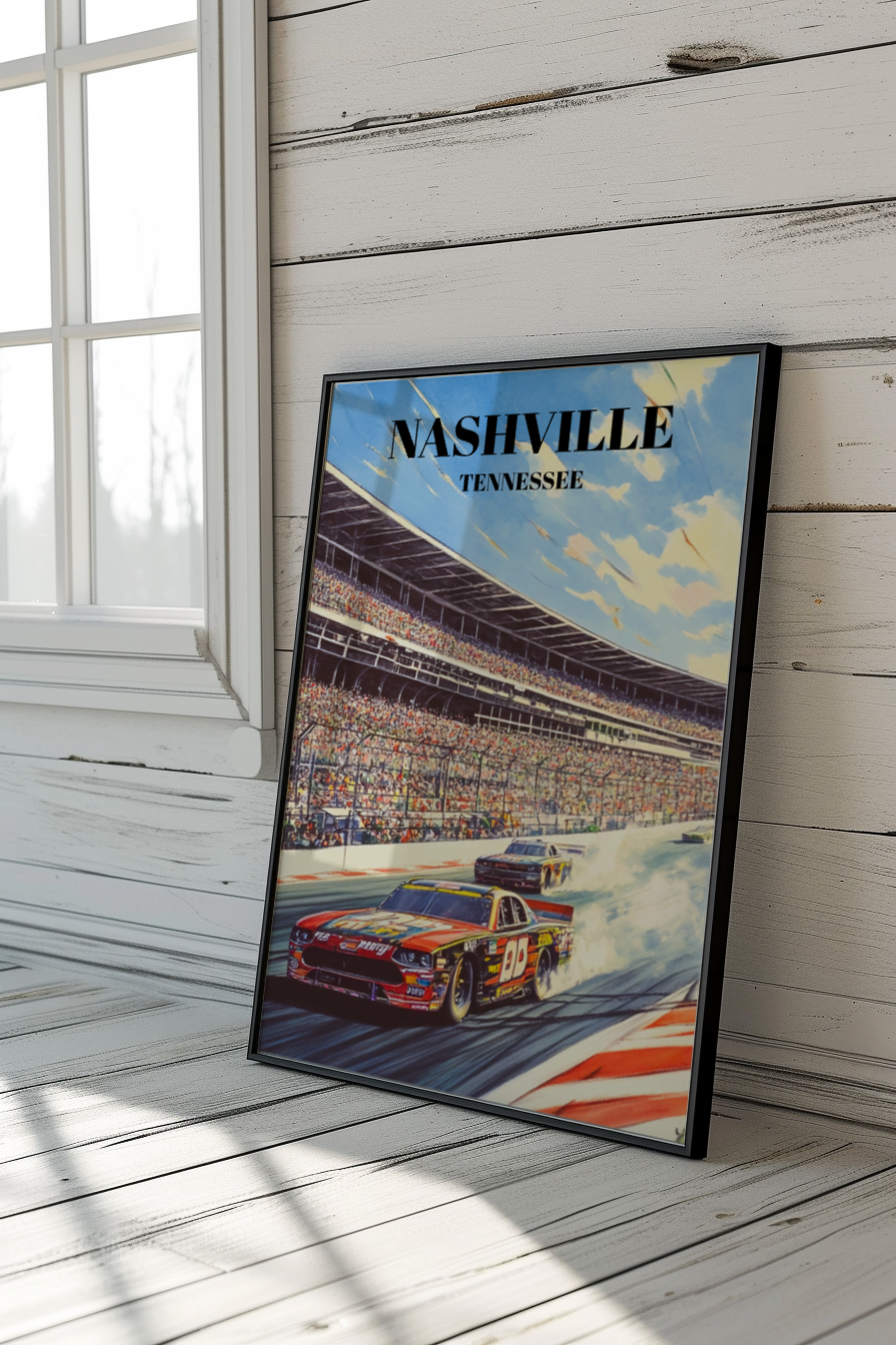 Nashville, Tennessee Superspeedway Travel Poster - Racing Wall Art, Motorsports Decor