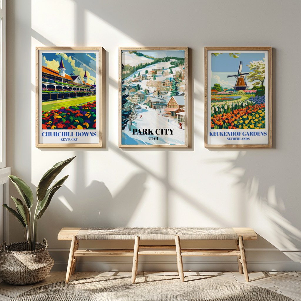 Bring the allure of Park City, Utah, into your home with this travel poster, perfect for ski lovers and mountain enthusiasts. This art print captures the iconic slopes, scenic mountains, and rustic charm of Utah’s premier ski destination. Whether decorating a cozy cabin, adding a touch of adventure to your living room, or finding the perfect gift for travelers, this Park City wall art is a must-have. Celebrate Utah’s breathtaking landscapes and vibrant outdoor lifestyle with this unique poster, ideal for winter sports lovers and travel collectors alike.