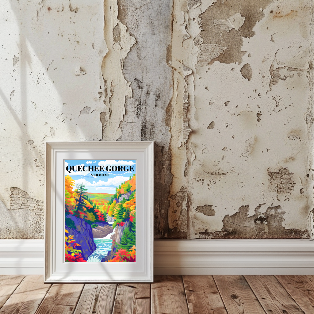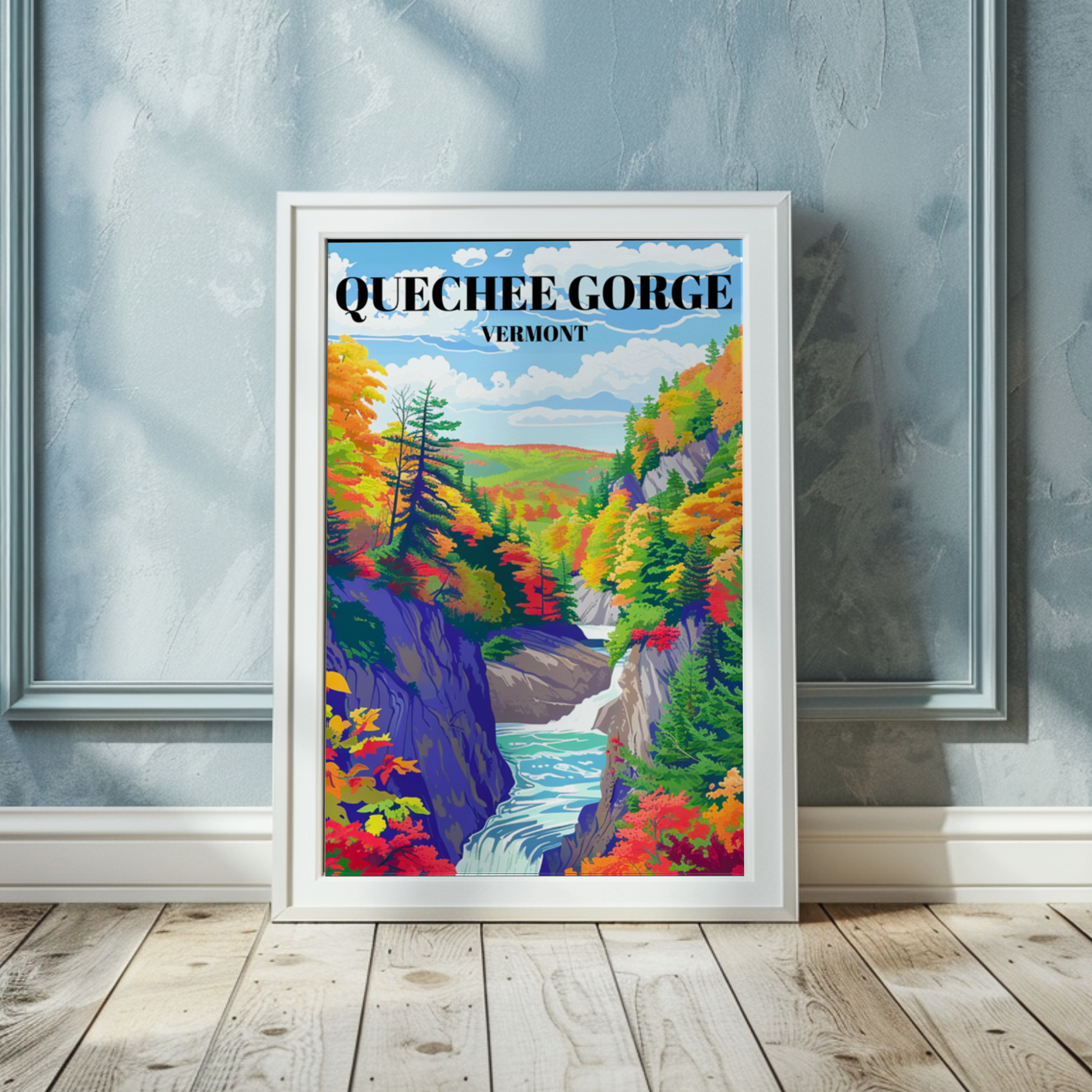 Quechee Gorge Vermont Travel Poster, Scenic Nature Landscape