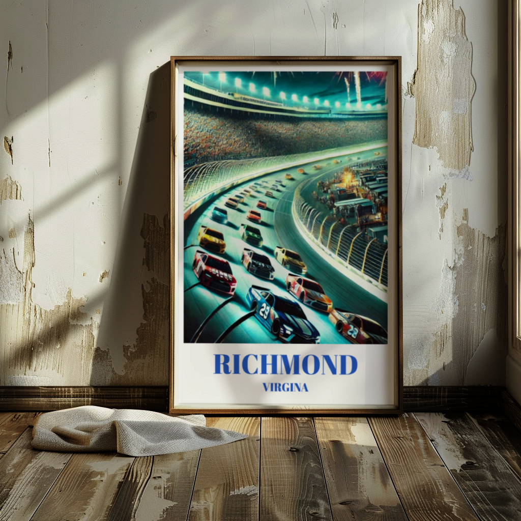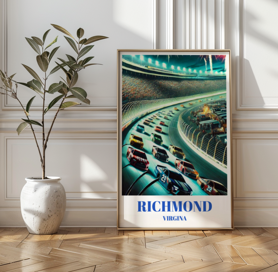 Richmond, Virginia Raceway Travel Poster, Stock Car Race Print