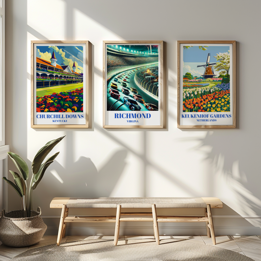 Experience the thrill of high-speed racing with this Richmond Raceway travel poster, a must-have for NASCAR fans, motorsports collectors, and racing enthusiasts. This detailed illustration of Richmond Raceway captures the excitement of stock car racing under the bright lights of the iconic short track. Whether you're a die-hard NASCAR fan or simply love classic speedway art, this vintage-inspired racing print makes the perfect addition to any man cave, garage, office, or sports room. Printed on high-quality paper, this bold and dynamic racing wall art is great for gifting to NASCAR lovers, race day fans, or car enthusiasts. Bring home a piece of Richmond Virginia’s legendary raceway with this one-of-a-kind auto racing memorabilia!