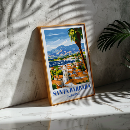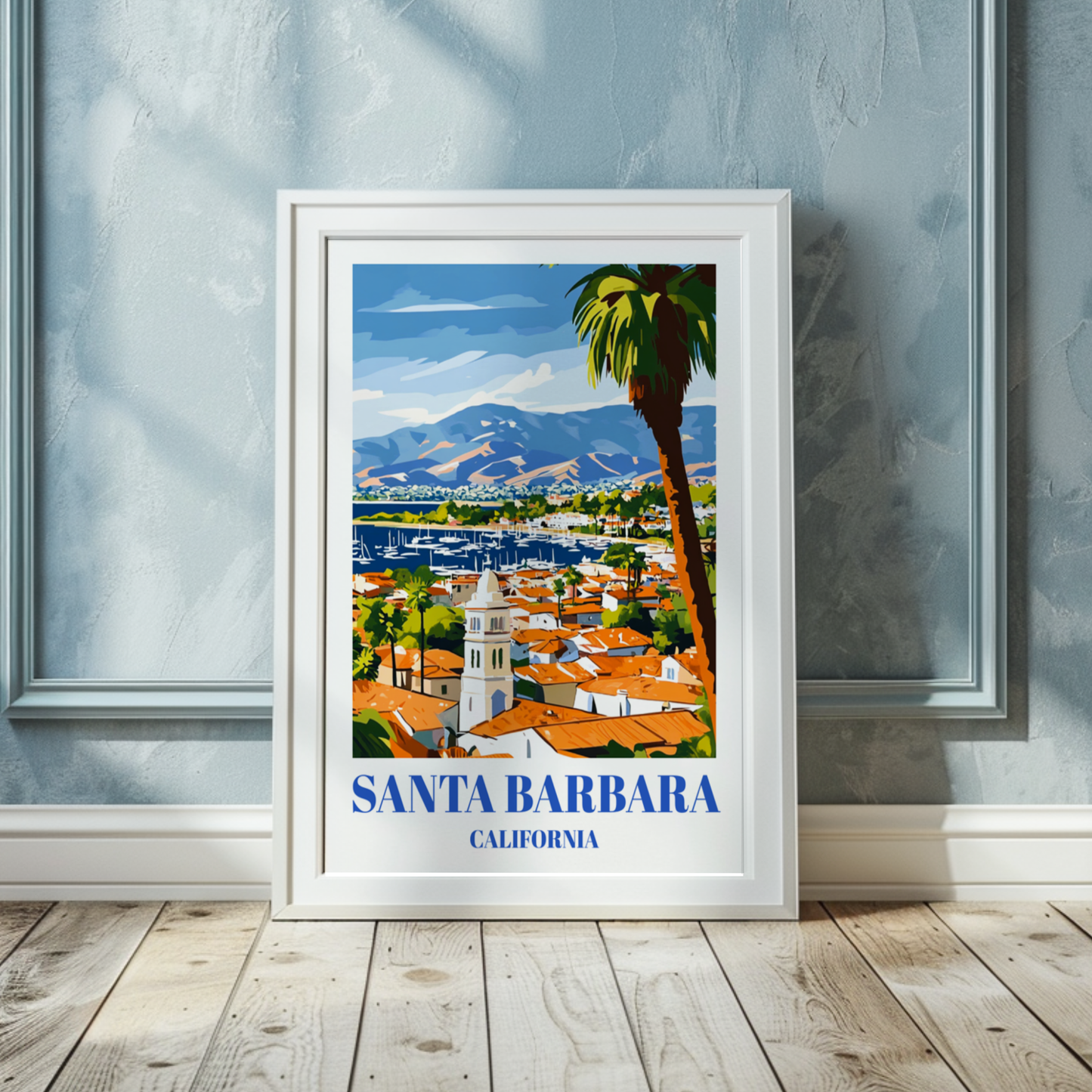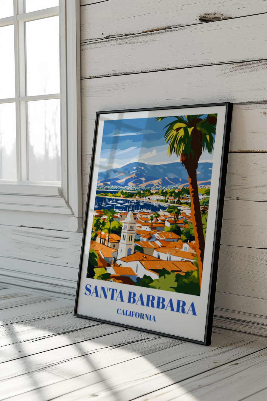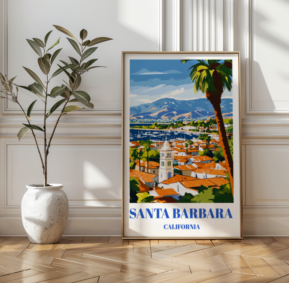 Santa Barbara Travel Poster - California Wall Art Print, Coastal Beach Decor, Scenic Pacific Ocean View, Santa Barbara Skyline Print,