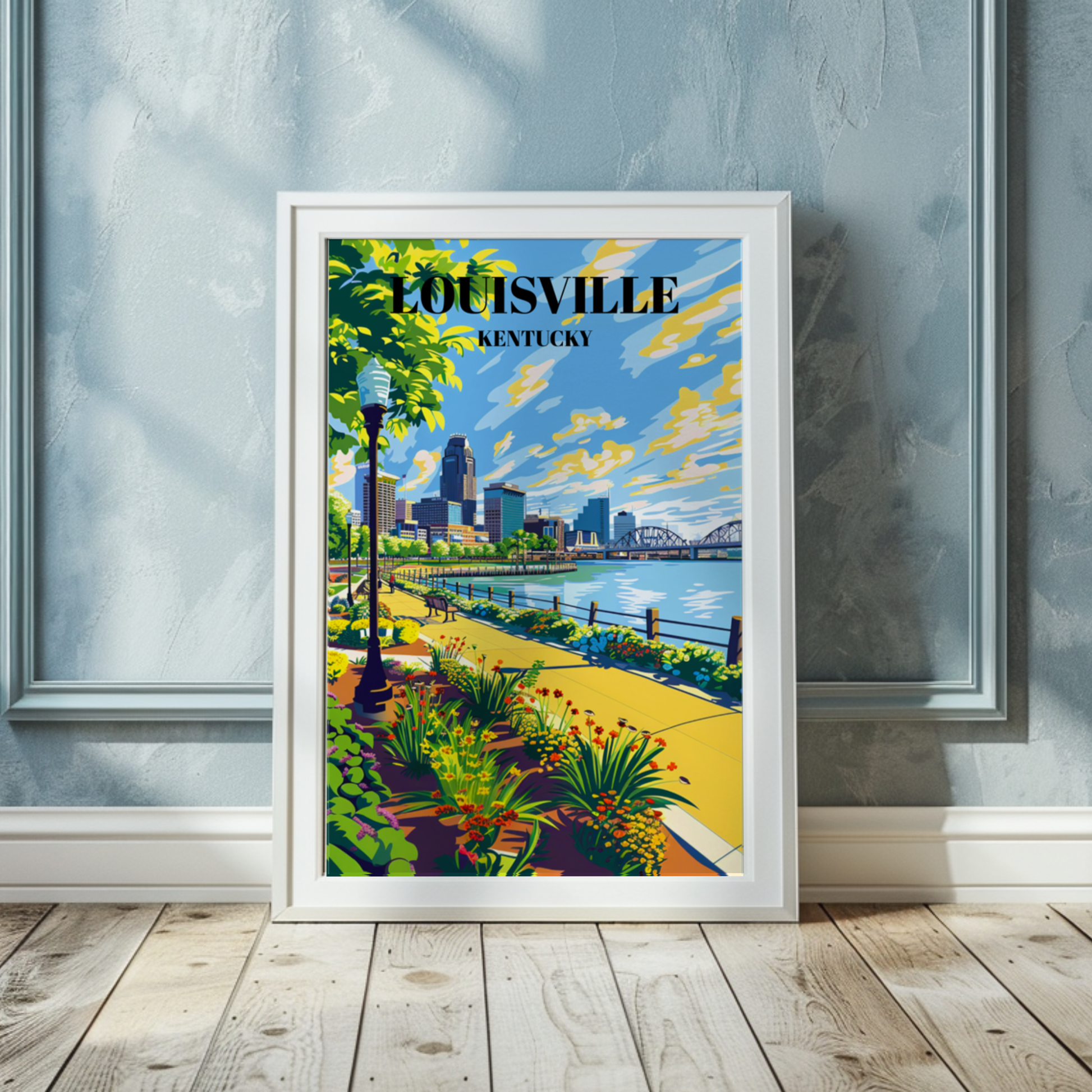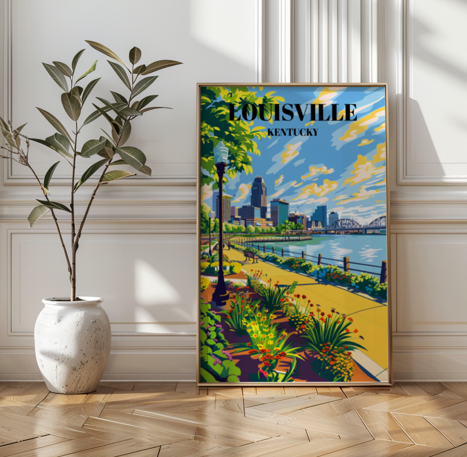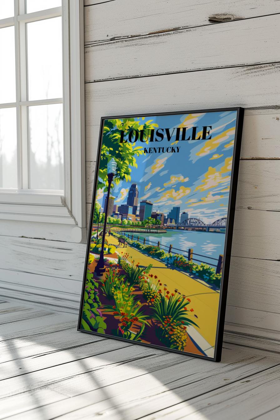 Immerse yourself in the scenic beauty of Louisville, Kentucky with our Waterfront Park travel poster. Capturing the tranquil ambiance of the Ohio River and the iconic skyline, this vintage-style print adds a touch of nostalgic charm to any space. Whether you're a local or a visitor, this poster is a perfect reminder of the city's vibrant riverfront and lush greenery. Ideal for home or office decor, it celebrates the unique allure of Louisville's waterfront and makes a thoughtful gift for any Kentucky enthusiast. Add a piece of the Bluegrass State to your walls today