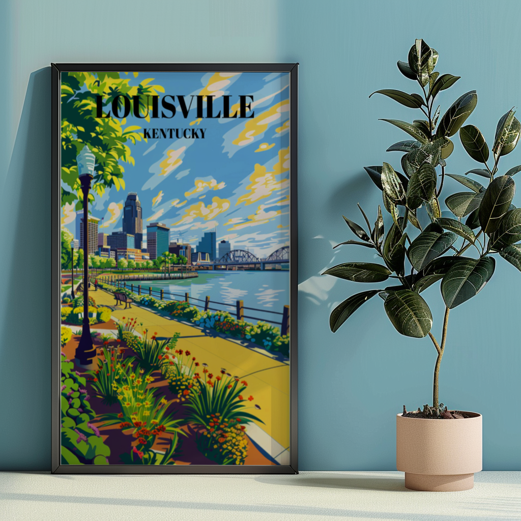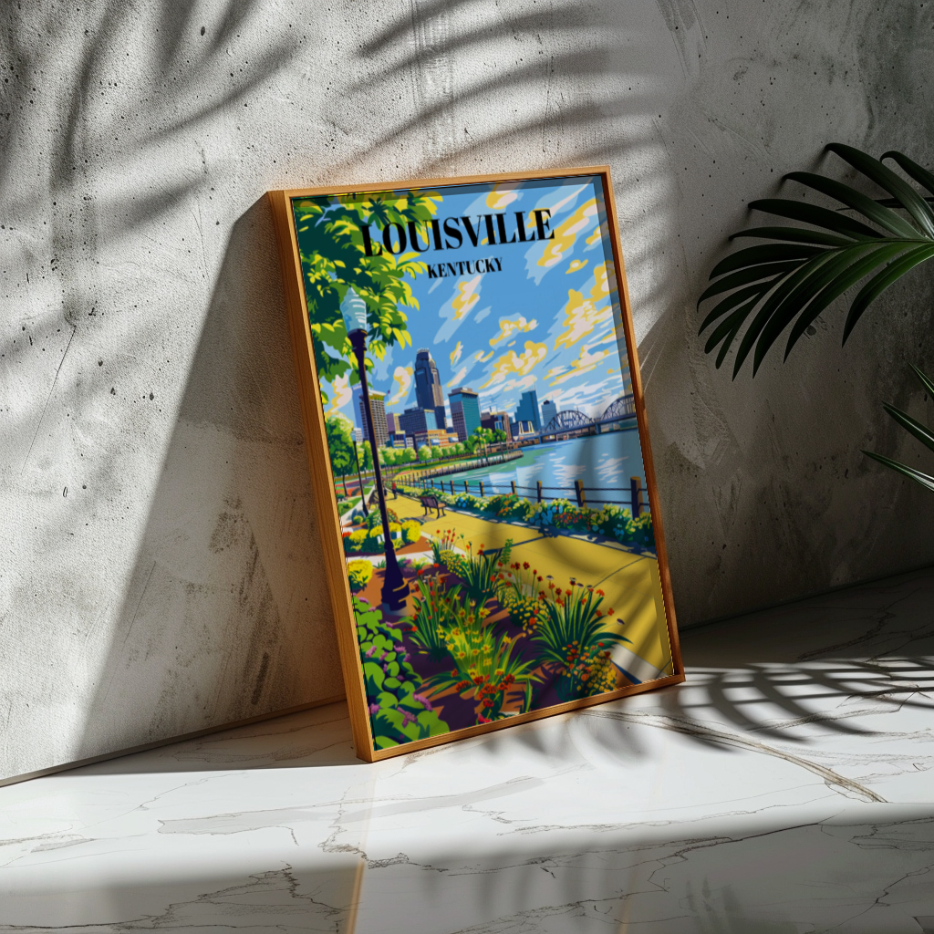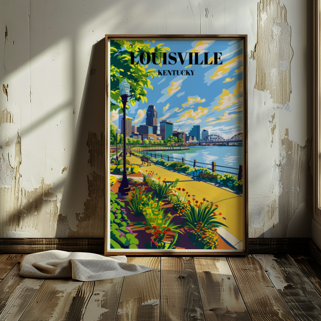 Immerse yourself in the scenic beauty of Louisville, Kentucky with our Waterfront Park travel poster. Capturing the tranquil ambiance of the Ohio River and the iconic skyline, this vintage-style print adds a touch of nostalgic charm to any space. Whether you're a local or a visitor, this poster is a perfect reminder of the city's vibrant riverfront and lush greenery. Ideal for home or office decor, it celebrates the unique allure of Louisville's waterfront and makes a thoughtful gift for any Kentucky enthusiast. Add a piece of the Bluegrass State to your walls today