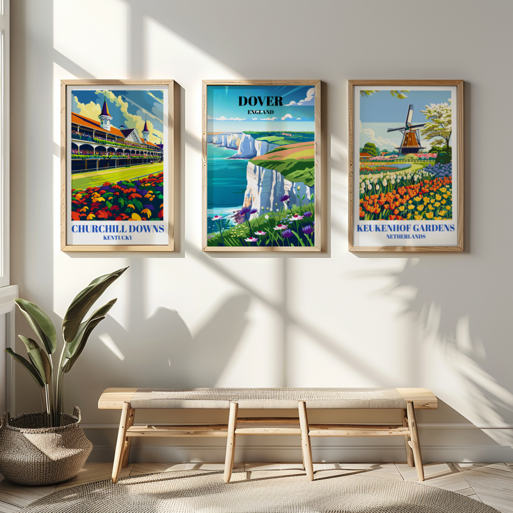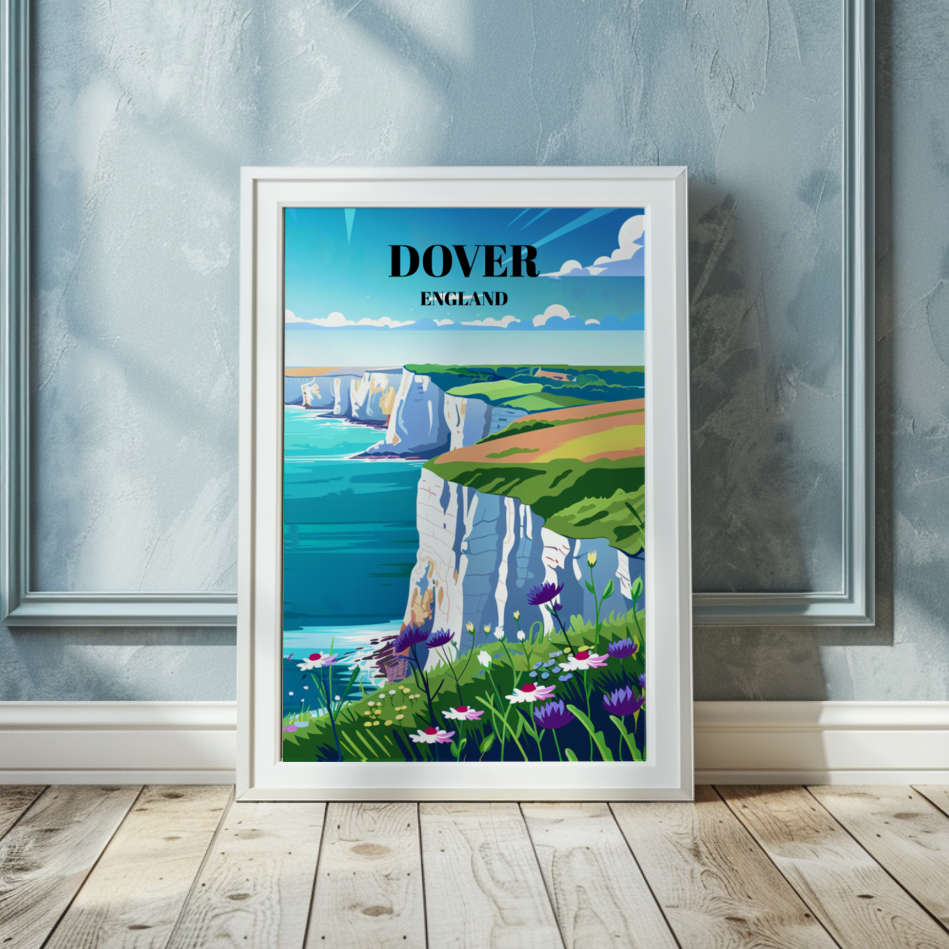 Transport yourself to the stunning coastal vistas of Dover with our vintage-inspired travel poster capturing the timeless beauty of the White Cliffs of Dover. Adorn your walls with this exquisite art print showcasing the majestic cliffs overlooking the English Channel. Perfect for lovers of nautical decor and coastal landscapes, this piece adds a touch of maritime charm to any space. Whether you're a history buff, nature enthusiast, or simply seeking unique wall decor, this poster is a must-have. Bring home a piece of England's iconic scenery and embark on a visual journey every day with our Cliffs of Dover travel poster.